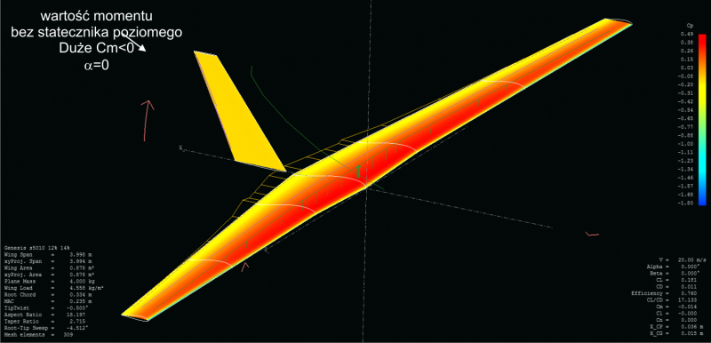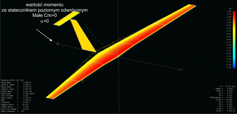 Witam Szanownych Kolegów Dwa miesiące temu zaświtała mi myśl, żeby zaprojektować i zbudować makiete ( do 4m) "latającego skrzydła" szybowca Genesis II. Bardzo mało w necie jest informacji nt tego modelu. Jak większość wie, jest to typ w którym żle dobrane profile na skrzydle będą skutkować złym lataniem. Dlatego też zwracam się do mądrzejszych o poradę i pomoc w doborze profili. Wyczytałem, iż tego typu konstrukcje lubią - wrecz koniecznie stosują w nich profile samo stateczne o zmiennym kącie natarcia od dodatniego do ujemnego. Tak jak na 1 zdjęciu. Na stronach: http://mplaneur.free.fr/genesis.html zastosowano profil Roncz 12% i 10% ze zwichrzeniem 1,5 stopnia. http://pierre.rondel.free.fr/images/genesis/genesis.htm zastosowano profil s5010 - niestety mój francuski jest kiepski a tłumacz w googlach to już wogóle nie pomaga, więc nie wyczytałem nic więcej. Ale zrozumiałem, że kolega Francus podszedł do tego bardzo naukowo, włącznie z badaniem profili Może ktoś z szanownych kolegów pomoże i doradzi - wiekszość podchodzi sceptycznie to tego prawie bezogonowego modelu. Mnie interesuje jaki profil zastosować o jakiej zmianie natarcia. Kadłub już narysowałem kwestia tylko przerobienia tego na laser. Za pomoc z góry dziękuje. A jeżeli nie będzie latał to będziełądnie wisiał pod sufitem :-). Pozdrawiam Rafał