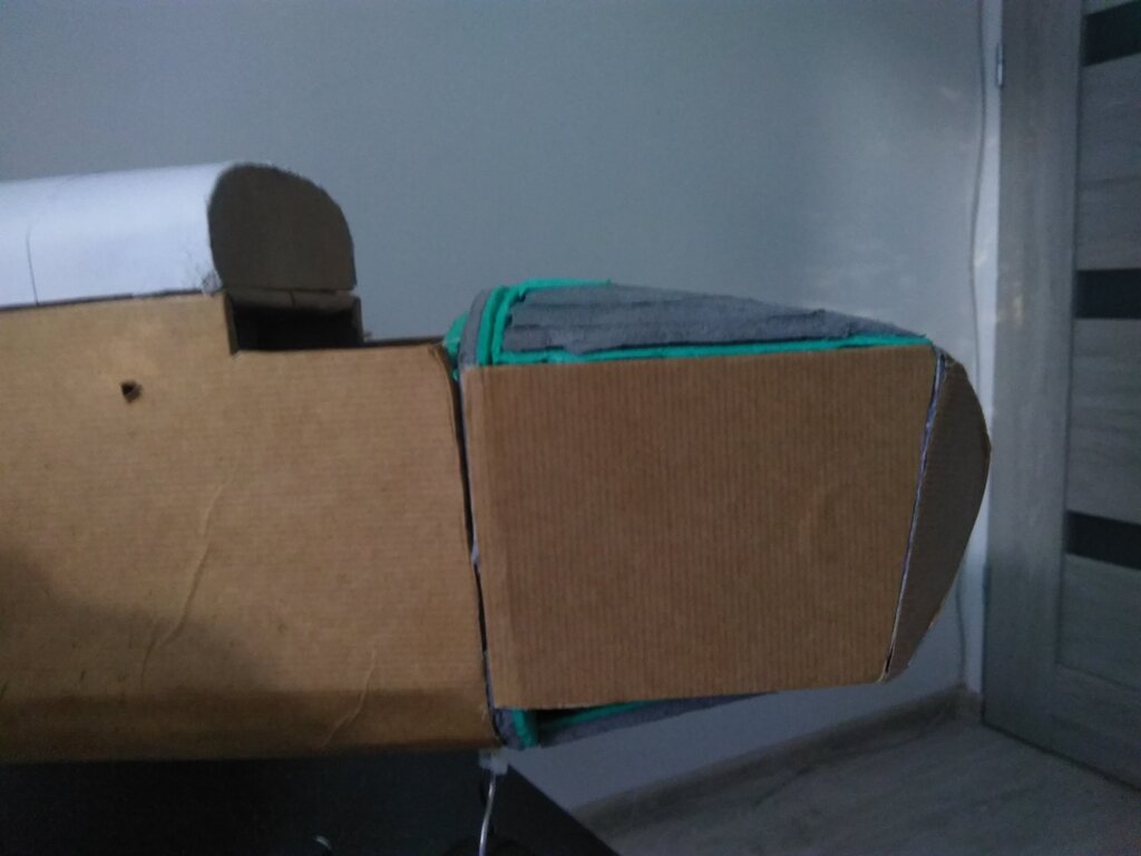 Witam ponownie zabrałem się za dalszą budowę modelu i na obecna chwilę postępy wyglądają tak: -od soboty utknąłem z gwintowaniem prętów do napędów kierunków. Imadełko stołowe jednak nie daje rady utrzymać pręta podczas gwintowania, pręt zaczął mi się obracać w szczękach i nic na to nie moge poradzić, więc obecnie próbuje po znajomych dopytać czy ktoś wpuści mnie na jakieś większe imadło o ile ktokolwiek posiada. Więc zostałem z dwoma gotowymi gwintami oraz jednym z którego nie moge zdjąć narzynki nawet, do skończenia tych napędów brakuje mi dorobienia dosłownie 3 gwintów. -zacząłem wycinać na nowo elementy z papieru i te które wcześniej były wycięte z podkładów, lecz z czasem leżąc na dnie kartona się pouszkadzały i dzisiaj zamierzam je powklejać na miejsca oraz zacząć przygotowywać pod malowanie, niestety ogon będę mógł dopiero zamknąć jak zrobię kierunki żeby mieć do nich dostęp. -poskładałem nos o którym jakoś wcześniej zapomniałem Na obecną chwilę wygląda to tak: (elementy papierowe położone tylko żeby orientacyjnie zobaczyć jak to będzie się kształtowało) -