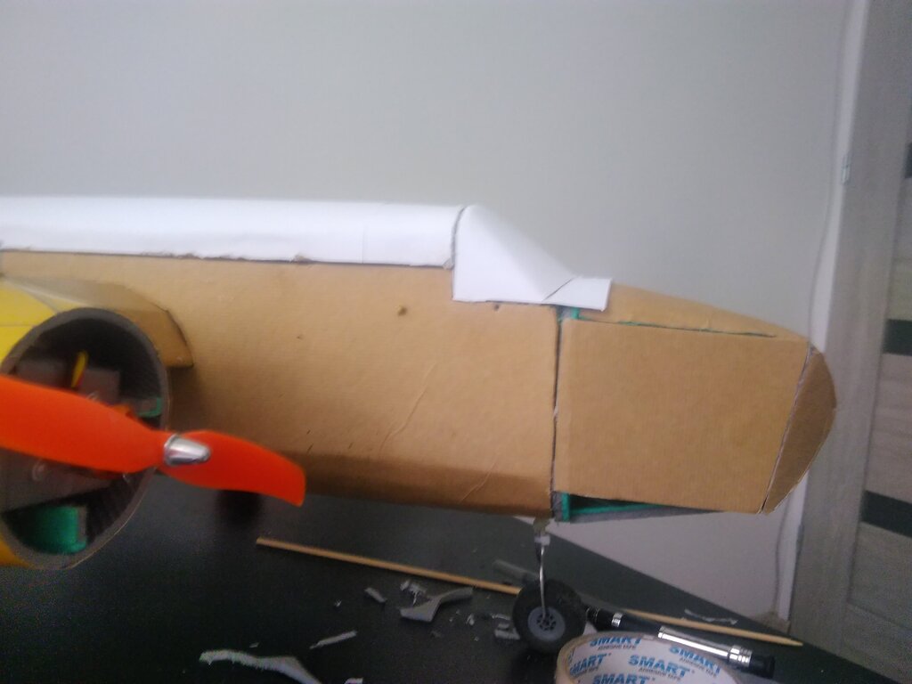 Owszem jest ona dość pionowa ale nie prostopadła zrobiłem tak jak było w planach, był filmik gdzie autor planów latał nim więc zostawiłem tak jak było na planach tyle, że oryginał jest o połowę mniejszy to może nie wygląda to tak pionowo ( https://www.flitetest.com/articles/ft-style-mighty-mini-b25-mitchell-build , https://youtu.be/blO679ET7eA ) -