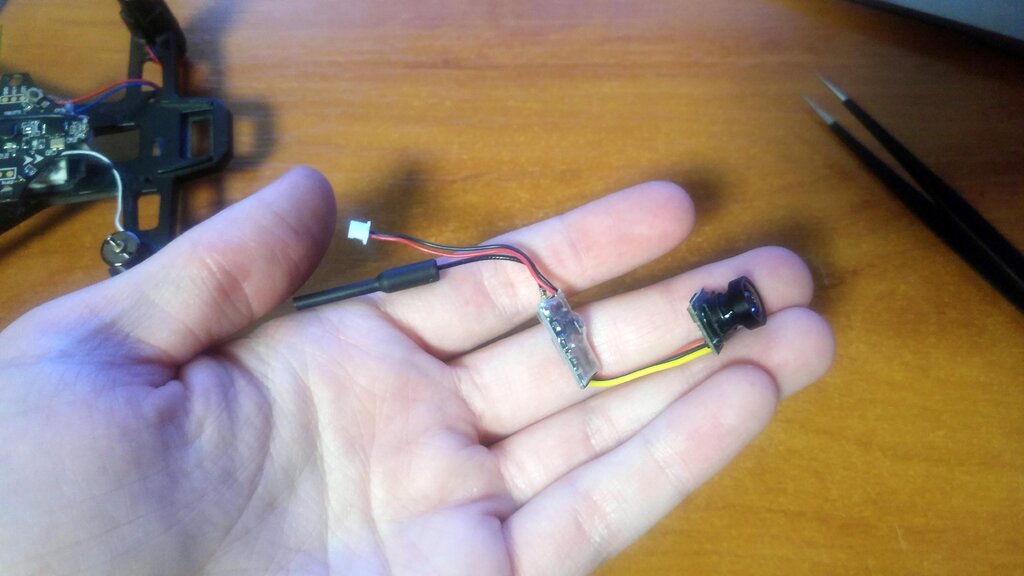Kamerka przyszła i na razie stwierdzam, że to dobry wybór . Naprawdę maleństwo i sama kamera idealnie mieści się w ramie którą mam, nadajnik z racji wielkości również, a miękka antena daje wrażenie, że szybko się nie rozleci przy ewentualnych kraksach, poza tym mogę ją ułożyć tak, że nie jest narażona na uszkodzenia, do tego jest na złączu więc w razie czego łatwo wymienić. Zasięg sprawdziłem na razie tylko w domu, na drugim końcu jest okej, ale to nie była wielka odległość , choć multum tu sieci WiFi. Jak kupię śmigła, bo brakuje mi akurat jednego z niedobitków które mam, oraz porządne akumulatory to nagram i może podrzucę film z latania. Tak to wygląda: I krótki filmik z gogli EV800, monitor na początku był około 20cm od kamery i mieści się cały w polu widzenia - i to jest bardzo fajne . Obraz w goglach wygląda nieco lepiej i uważam że jest bardzo dobrze, bałem się że taki kąt widzenia będzie za duży, ale jest świetny . Nie ma jakiegoś wielkiego efektu rybiego oka, ale widać naprawdę dużo dookoła - no jak do takiego "dronika" to myślę idealnie . Także dzięki jeszcze raz Przemek za poradę . -