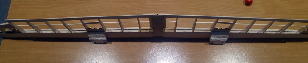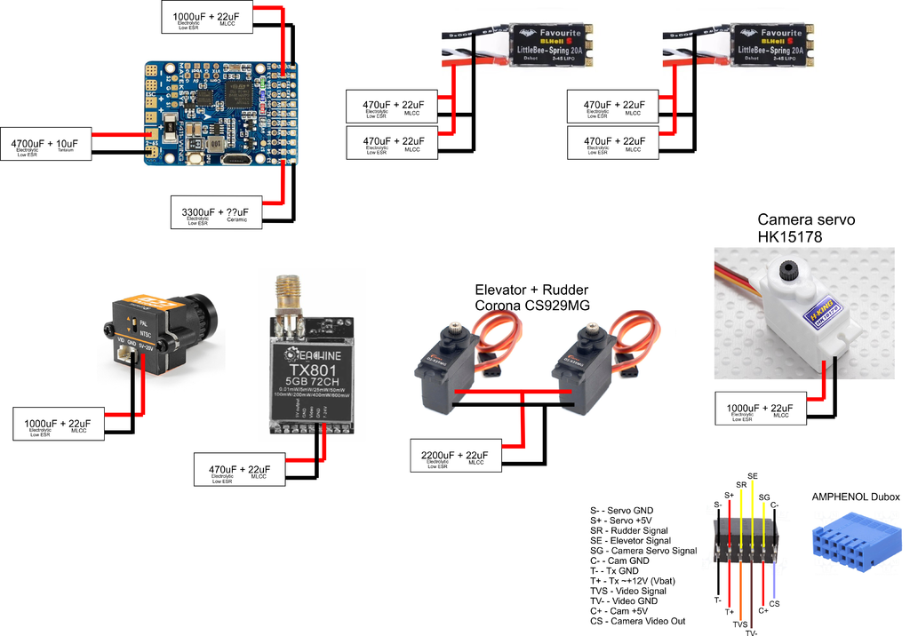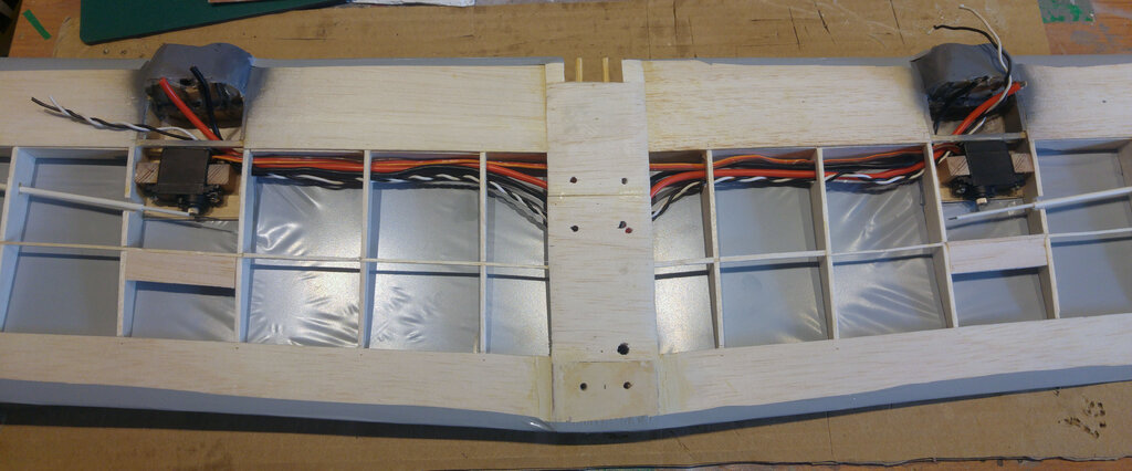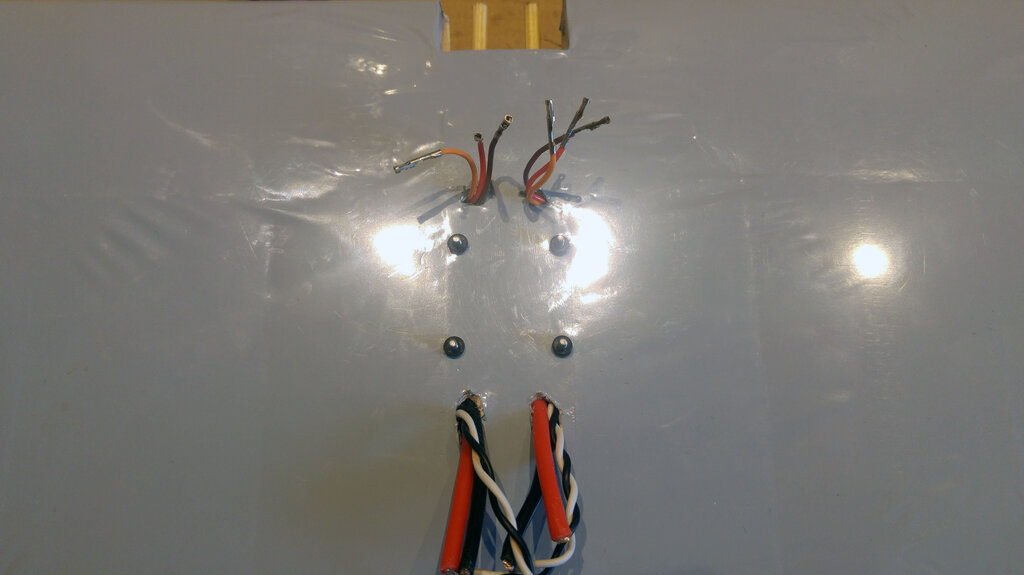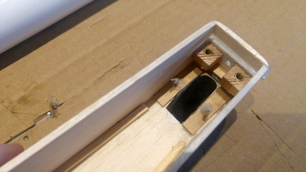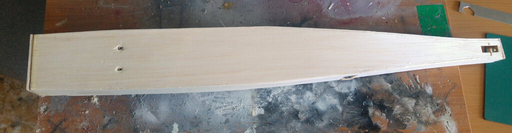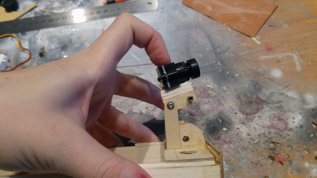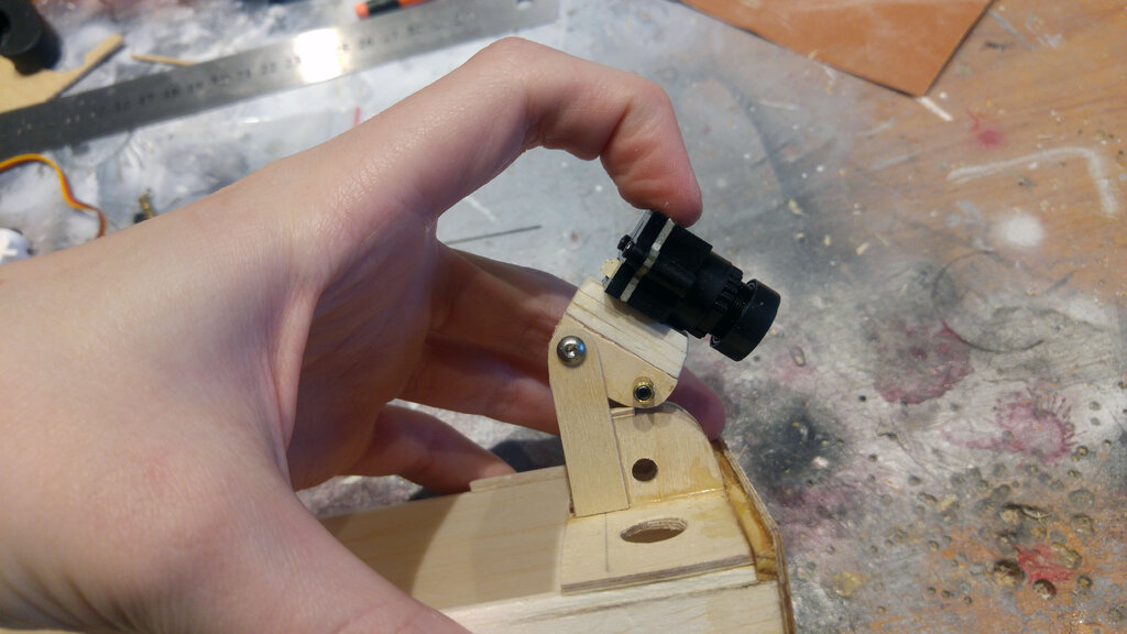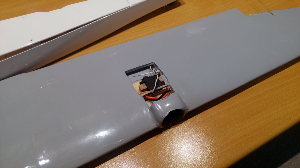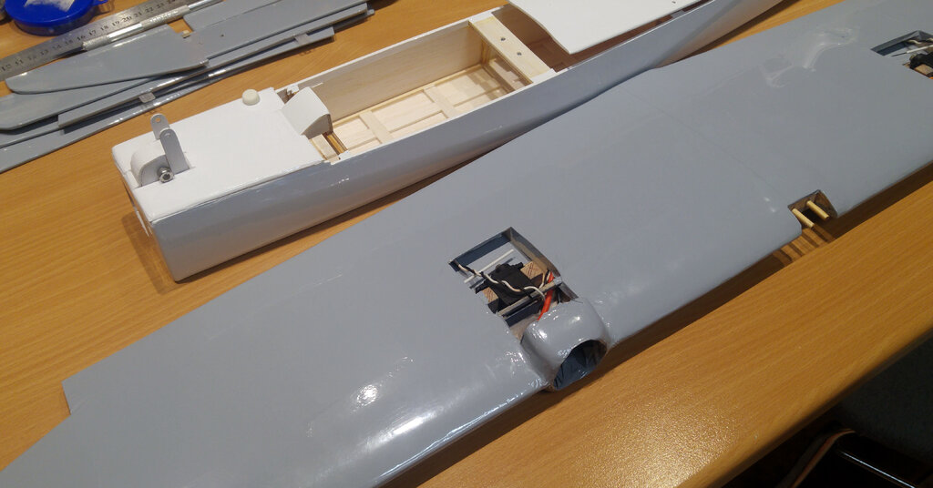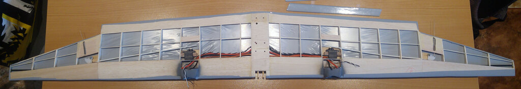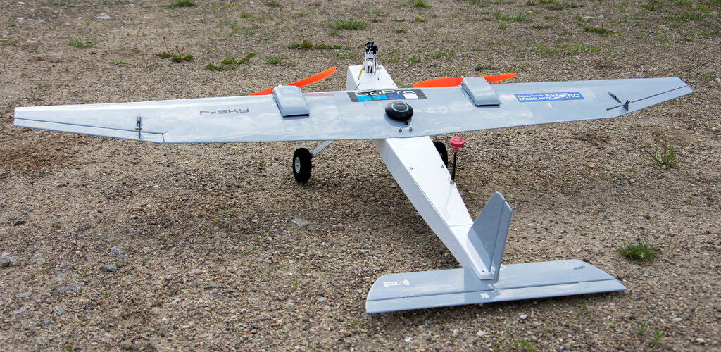4. Dobra, chyba skończyłem, teraz muszę liczyć na dobrą pogodę w ciągu następnych dni i może coś się uda . Ogólnie zmieniłem troszkę mechanizm ruchu kamerki, bo poprzedni powodował drganie serwa (nieco złe kąty), co prawda obszedłem to programowo funkcjami logicznymi w aparaturze, ale zdecydowanie było to nieeleganckie, stąd zmieniłem to na dłuższą dźwignię, ale nie chodzi tu o siłę, a geometrię popychacza. Teraz chodzi gładko i bez luzów . Wyszedł jednak pewien szczegół, który ukazuje kto ten model projektował ?, bo zrobiłem tyle miejsca z tyłu na wyważanie, a tu było blisko niepowodzenia z wyważeniem bez kamerki . Ale jednak się udało, także jedno z założeń wstępnych spełnione - wyważenie bez jak i z kamerką na froncie. No cóż, uczę się, ale i tak jestem dumny, że powstało coś takiego z mojego pomysłu i konstrukcji - choć tak na 100% okaże się po locie . Na razie poustawiałem co się da w Inav i na balkonie nawet szybko łapie GPS'a i "działają" tryby autonomiczne - tz. włączają silniki itp. Nie wiem jeszcze czy tryb Acro (domyślny) prawidłowo działa i stabilizuje, bo ruszając modelem serwa ruszają się dosłownie minimalnie, ale się zobaczy, bo to moje pierwsze doświadczenie ze stabilizacją, a także kontrolerem . Waga z akumulatorem taka jak w ostatnio oblatanym Wicherku - 1250 gramów, sam akumulator to 340 gramów czyli 27% wagi modelu z kamerką, bez niej będzie około 100 gramów mniej. Daje to obciążenie powierzchni: 58g/dm², sam nie wiem czy to dużo czy mało, to też zobaczymy , choć chyba powinienem usunąć z tego tytułu słowo motoszybowiec . Tak to się wyważa bez kamerki: A tak z kamerką: No i takie jedno zdjęcie złożonego modelu, ale będą lepsze jak wyjadę na lotnisko (niestety telefon robi troszkę kiepsko w takich warunkach): No i nie mogłem się powstrzymać przed sprawdzeniem jednej rzeczy jeśli chodzi o regulatory : Duo.mp4 A i w sumie zastanawia mnie ten kompas, bo niby pokazuje dobrze jak kręcę się w pokoju, ale jak przechylę model w przód lub w tył to trochę to głupieje (nie mówię o dużych kątach, bo to bym rozumiał, ale takim nieznacznym przechyle).