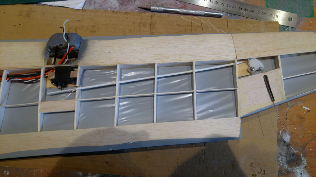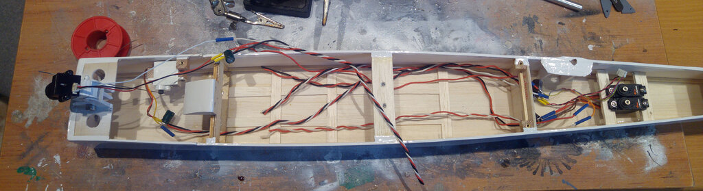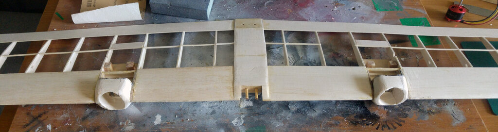 24. Ciąg dalszy. Jestem sobą zawiedziony, że nie udało mi się wyrobić w podstawowym terminie, także sorki, ale niestety takie życie. Nie mniej oczywiście kontynuuję powolutku. Ponieważ zdjęć troszkę jest to dla czytelności standardowo chowam w spoiler i tam też dodam parę słów przy każdym zdjęciu: Generalnie jak na razie jestem zadowolony z tego jak to wychodzi biorąc pod uwagę, że to w pewnym sensie improwizacja i własny projekt . Zamierzam w okolicach silnika zmieścić również regulator (oczywiście dbając o jakiś przepływ powietrza) a także servo od lotek, zastanawiam się jednak jeszcze jak rozwiązać ich napęd. Czy wygiąć bowden w łuk i dać to bezpośrednio, o ile się uda tak to zgiąć, czy zastosować dźwignie - tutaj zastanawiam się jak taką dźwignię umocować by nie było luzów, ale też nie było tarcia i jakiegoś zużycia, bo nigdy tak nie robiłem. Ale będę myślał i mierzył .