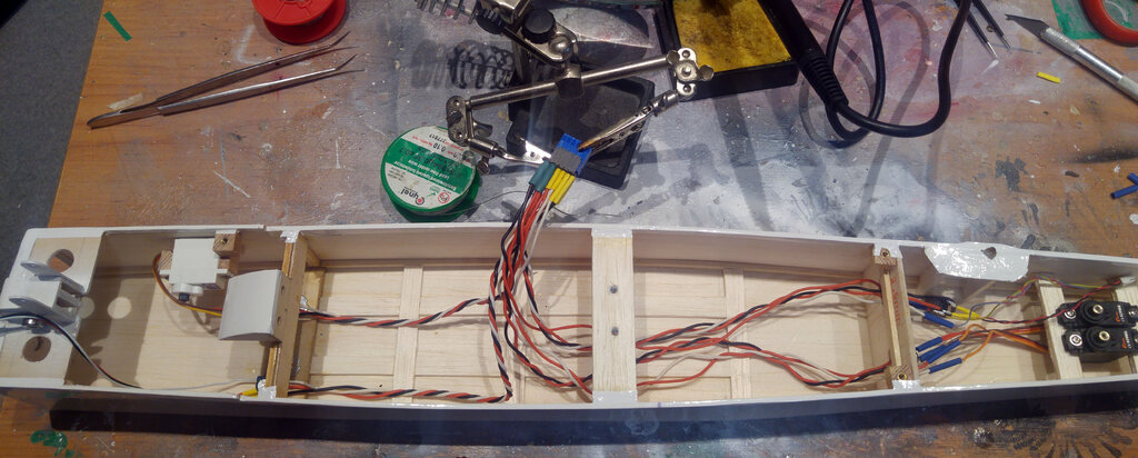 6. Ehh, zeszły mi 2 dni na tym lutowaniu . Niestety nie wszystko poszło po mojej myśli, bo coś mi odbiornik nie współpracuje tak jak bym chciał, na szczęście cała reszta działa. Chodzi o to że w trybie SBUS mam sterowanie, ale nie mam telemetrii (mimo podłączonego kabelka SmartPort do pinu w kontrolerze), stąd próbowałem zmienić wszystko na F.Port, więc wylutować, wlutować chwilowo kabelki do zmiany oprogramowania znowu wlutować i nie działa nic ?. Próbowałem każdej opcji ale nie mam nawet odczytu kanałów, stąd znowu muszę chyba wrócić do SBUS i pogodzić się z brakiem telemetrii ?. Kilka fotek, z takich mniej ciekawych prac: Denerwuje mnie tylko ten brak telemetrii ale nie umiem sobie niestety z tym poradzić, opcji trochę jest ale jak uporam się z tym odbiornikiem (mam nadzieję, że SBUS teraz zadziała) to będę konfigurował i liczył na pogodę i czas. EDIT: Na SBUS znowu działa, tyle dobrego, choć telemetrii poza podstawową z odbiornika (Rssi i napięcie) nie mam .