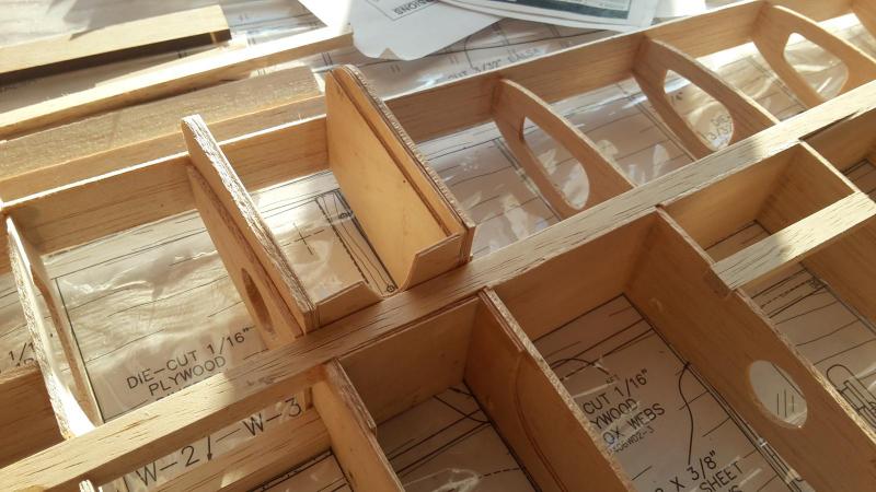 20. witam Zabrałem się za budowę skrzydła. Prace postępują dość sprawnie. Mam tylko jeden dylemat, nie potrafię odnaleźć części Aileron Bellcrank Plates (AB) W opisie piszą o sklejce a w wykazie częśći na planie figuruje pod numerem P406W11 jako balsa. W paczce z sklejką jest coś podobnego ale nieco dłuższe niż wymiar między żebrami.