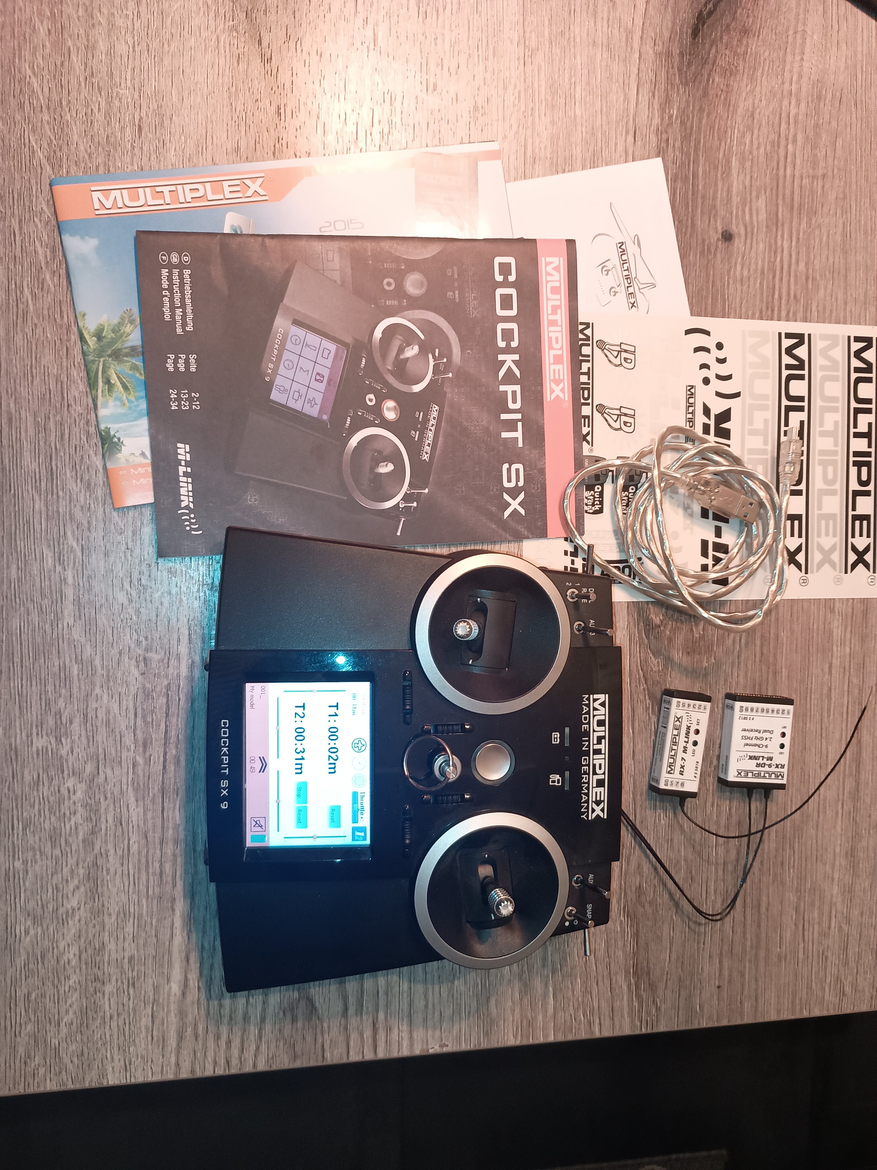 Cześć. Sprzedam aparaturę Multiplex Cockpit SX 9 z dwoma odbiornikami rx9dr i rx7. Aparatura w idealnym stanie, używana sporadycznie, odbiornik rx9 nie używany. Akumulator jeszcze trzyma, ale ze względu na wiek można pomyśleć o wymianie. Informacje dotyczące sprzętu dostępne w Internecie. Cena za całość to 1000zł.