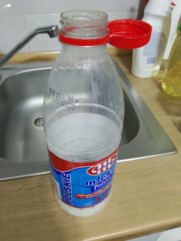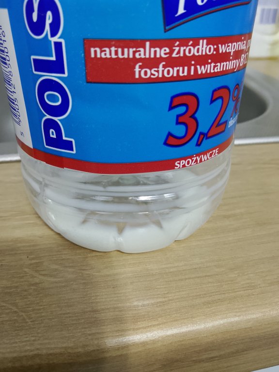 Po wypiciu mleka na dnie zostaje o coś takiego... resztki. Mleko to nie wda a tym bardziej wyrób mlekopodobny co nam wciskają jako mleko ! To co zostaje na dnie to po dwóch dniach na słońcu wali jak z murzyńskiej chaty ! Niech każdy zrobi test ! Ugotuj makaron na mleku a po zjedzeniu nalej do do tego garnka i przykry przykrywką i odstaw na kilka dni! Zdziwisz się jeden z drugim jak to pokrywkę zdejmniesz ! I teraz taka maszyna co połyka butelki i je zgniata to po dwóch dniach lęgły by się muchy i robactwo dookoła a smród z miasta docierał by do wsi ! Ci co wpadli na ten system kaucyjny jak by chcieli zarobić na tych butelkach po wyrobach mlecznych musieli by je myć ! A to im się nie opłaca ! Taka cała to jest ekologia gdzie liczy się tylko zysk i kasa a nie ochrona środowiska.