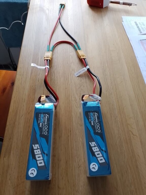 Powinno starczyć pod ten silnik. Ja połączyłem dwa 5s 5800mAh. Regulator jak wyżej a silnik dałem mniejszy na tą chwilę EMAX GT5335/09. Śmigło założyłem 24 celowe. Waży tylko 3g więcej jak śmigło 22 cale. Trochę pokręciłem i model na zimę trafił do hangaru 😅 A jak to będzie za mało mocy to mam śmigło 26 cali i silnik GT 5345/09. Mój model będzie ważyć około 10kg do lotu.