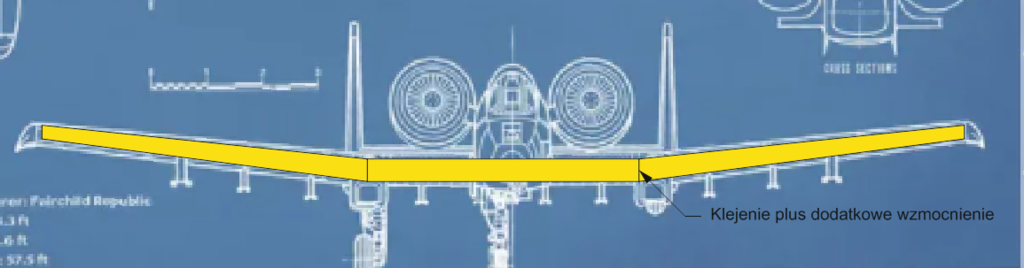 Ten model ma lądować tak jak model z tematu "Konwersja drona w B-17" ślizgiem w polu po kukurydzy? To tak konstrukcja musi być mocna, ja bym tam wpasował dwa dźwigary z twardej balsy gr. 10mm a resztę usztywni poszycie... tak mi się wydaje. W spitfire 1,6m usztywniłem tak skrzydło wykonane ze styropianu(tak z tego co kulki się sypią wszędzie dookoła) i jest OK. element z balsy wygląda tak, skrzydło klejone na klej Technikoll z trzech części, tylni dźwigar o połowę krótszy Tak bym zrobił A może warto zrobić skrzydło składające się z trzech części i te wzniosy były by odłączane na czas transportu i przechowywania... -