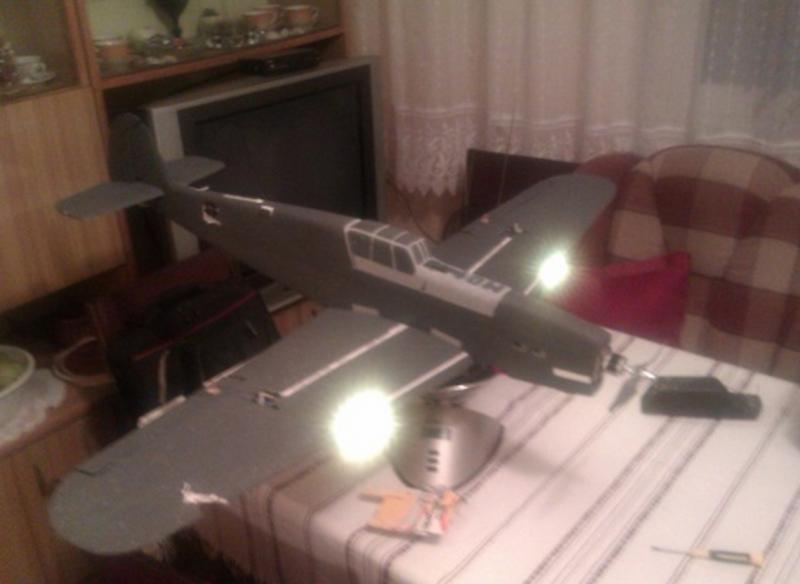 Wczoraj wieczorem wstępnie zamontowałem lotki i osadziłem serwomechanizmy Tower Pro SG92R-super mocne , które nie są wcale super się dowiedziałem. Ale chcę powiedzieć, że nie będzie żadnych drgań lub trzepotania lotek. Zastanawiam się dale czy warto robić klapy czy sobie odpuścić. Może ktoś podpowie. Może bym jeszcze przed pomalowaniem zamontował jakieś oświetlenie led tak jak w M01 na załączonym zdjęciu.