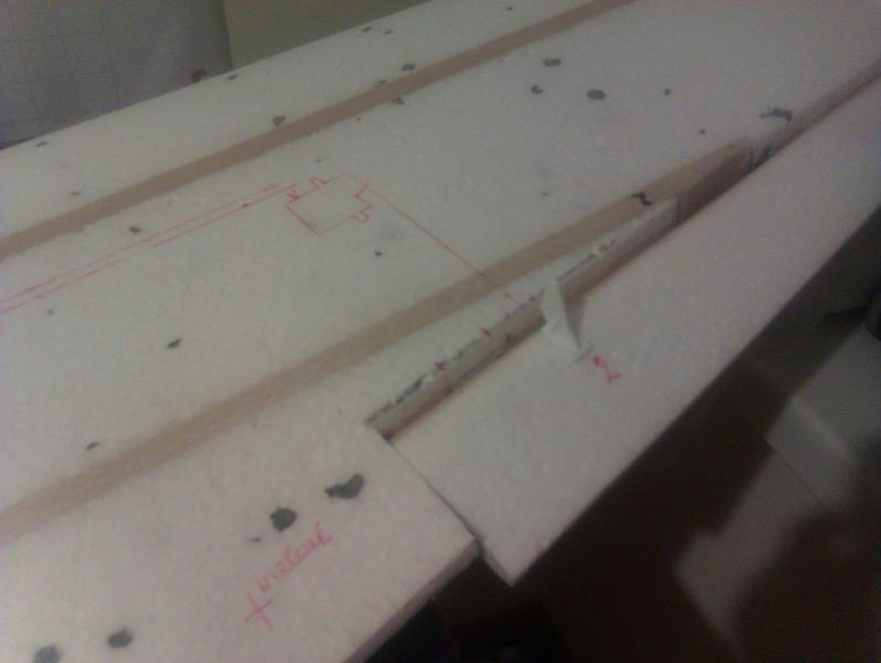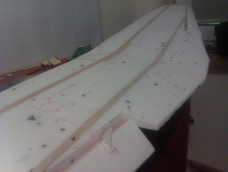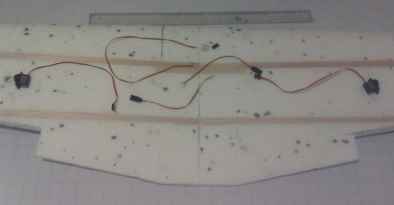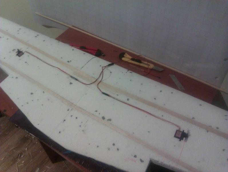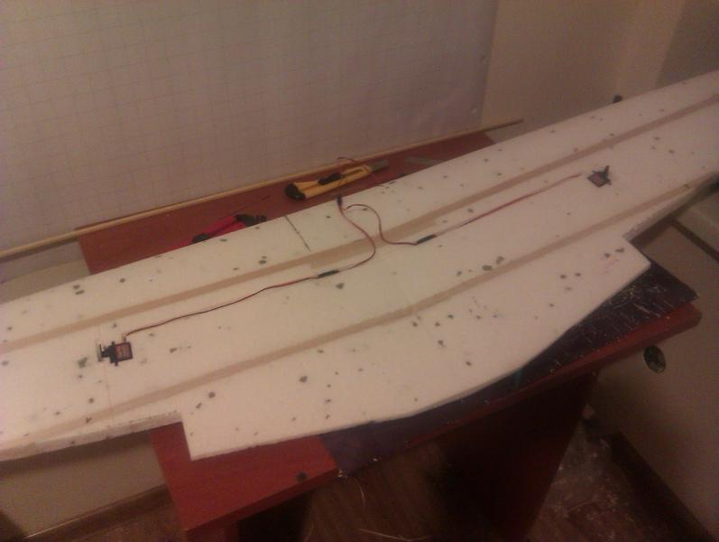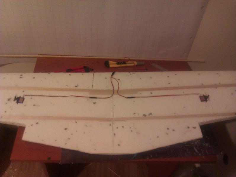 Spokojnie... to nie będzie rakieta tylko model do polatania. Jeśli chodzi o te serwomechanizmy to mnie nie zawiodły jeszcze ani razu. Mam je teraz w sześciu innych samolotach po cztery w każdym z pięciu i w jednym siedem szt., i wszystko działa jak należy. Co prawda trafiły mi się dwa popsute, które nie działały od nowości. Pakiet nie jest docelowy. Planuję kupić 14,8V o pojemności 5500mAh. Silnik ten obsługuje 3-4S zresztą się okaże. Samolot mimo rozpiętości 1600mm nie będzie ważył więcej niż 2kg gotowy do lotu. Mam w swojej kolekcji kombajn latający własnej konstrukcji o rozpiętości 1400mm, gotowy do lotu z kamerą waży zaledwie 1000g gdzie kamera waży 100g. Skrzydło jak widać wykonane ze styropianu i powzmacniane balsą. To najszybszy sposób na wykonanie. A styropian bardzo dobrze się nadaje do wykonywania modeli tej rozpiętości. Dziś po ciężkim dniu w pracy udało mi się jeszcze zrobić rozdzielacz do serwomechanizmów od lotek