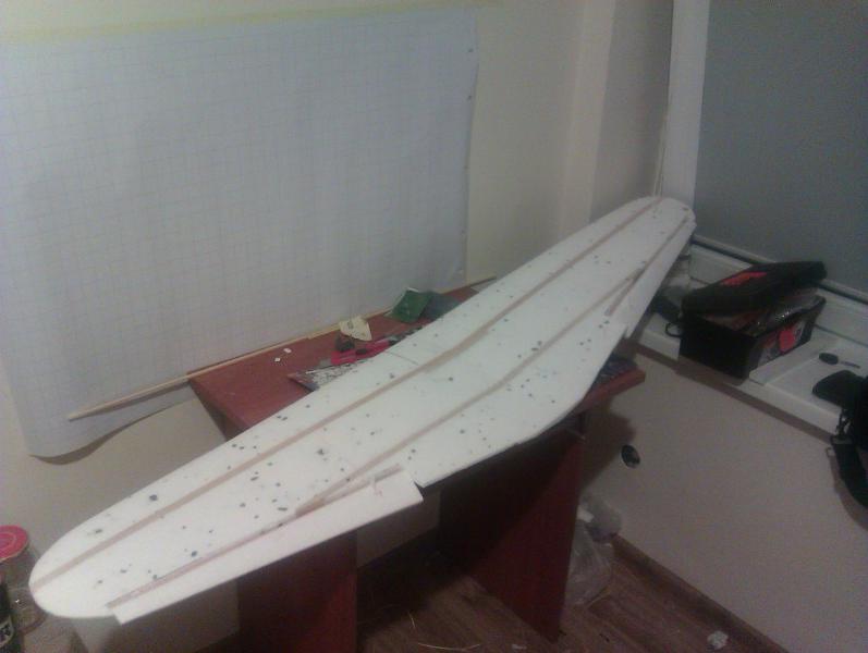 Jak skończę skrzydło, wezmę się wtedy za kadłub i pomyślę chwilę, się zastanowię jakie śmigło będę musiał zastosować i czy będę musiał kupić inny silnik. Wezmę pod uwagę wszystkie dobre rady, im będzie ich więcej tym lepiej. Na dziś dzień mam doświadczenie w budowie samolotów o rozpiętości do 1280mm i wadze nie większej niż 700g.