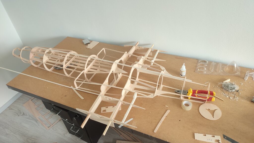 No moja Iskra wygląda tak: Jakoś 3h mi to do tego punktu to zajęło. Na tę chwilę całoś jest połapana jedynie w kilku punktach na CA Całość dopiero skleję porządnie na wikol, ale to trochę później. Sam zestaw jest bardzo dobrej jakości, ale nie jest to najprzyjemniejsze co w życiu składałem. Tzn. Nie jest tak przemyślany, że na sucho trzyma się kupy. W efekcie właśnie trzeba to łapać na CA, żeby kąty całoś trzymała. -