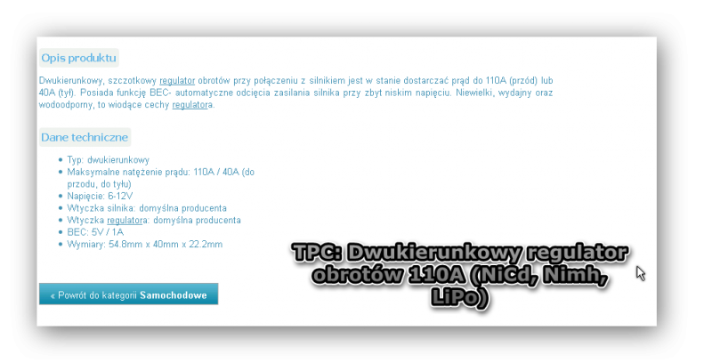 6. Witam serdecznie to mój pierwszy post, proszę o wyrozumiałość. Chciałbym dobrać odpowiedni regulator do silnika ale po kolei.. Posiadam łódkę wędkarską do wywózki zanęty który miał zamontowany silnik Igarashi SP 3657-50 12v + regulator TPC: Dwukierunkowy regulator obrotów 110A (NiCd, Nimh, LiPo) była zamontowana śruba dwułopatkowa 25mm Wszystko działało jak należy jednak łódka przy delikatnej fali w ogóle nie miała pędu więc wymieniłem, silnik na mocniejszy Silnik elektryczny Motraxx X-Drive 550-1 oraz wymieniłem śrubę na 3 łopatkową śr. 55mm I tu się zaczęły problemy, pierwsze wodowanie i łódka pływała bardzo łądnie jednak tylko kilka minut ponieważ regulator się spalił, aż obudowa się stopiła.Chciałbym dobrać odpowiedni regulator do tego modelu silnika pozostając tm samym przy większej śrubie Załączam grafiki wraz z dokumentacją