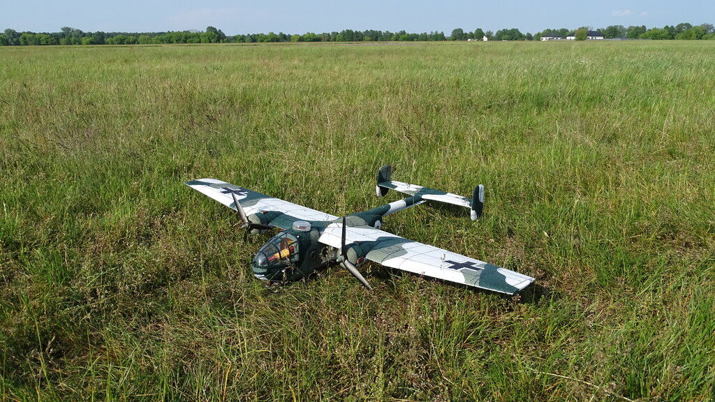 Lata bardzo poprawnie , jest szybki ale i fajnie szybuje . Oczywiście zwrotnością nie dorównuje jednosilnikowym myśliwcom . Jeżeli chodzi o cięciwę to dokładnie przed zaokrągleniem ma 92 mm , w powietrzu wydaje się że ma bardzo wąskie skrzydła . Oblot dokonywany był na bardzo minimalnych wychyleniach lotek i steru wysokości oraz 1/2 gazu, dlatego tak majestatycznie się prezentuje, przy większych wychyleniach jest bardziej ruchliwy. Fajny modelik wyszedł z pracowni Marka. Pozdrawiam i polecam Bre. 693 jako samolocik do rekreacyjnego latania. m