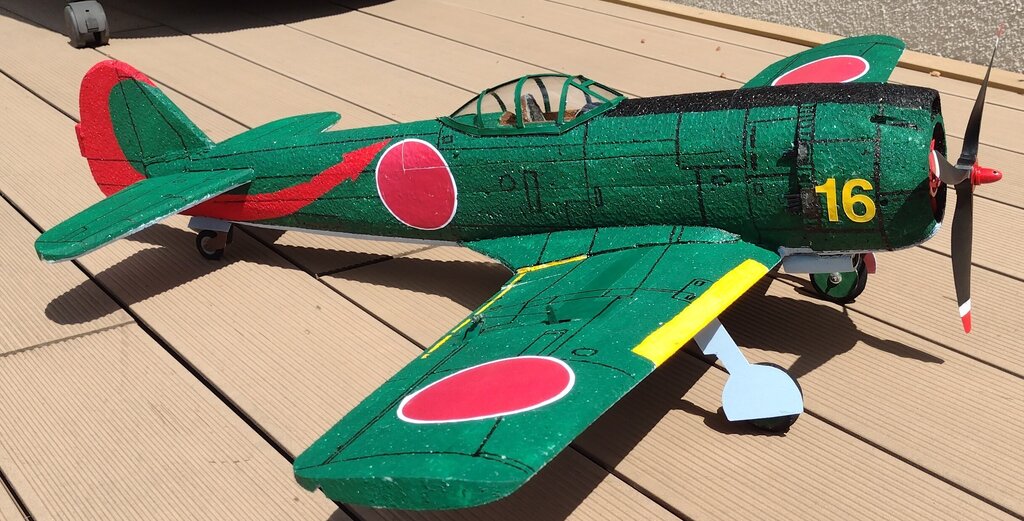 Jeżeli mówimy o samolotach japońskich II wojny światowej , zawsze mamy na myśli Mitsubishi A6M " Zero" , Kawasaki Ki-61 " Jaskółka" , no i może Mitsubishi J2M Raiden, a wyobraźcie sobie że lotnictwo Cesarza Japonii miało około 50 typów myśliwców i ponad 30 wersji bombowców. Niezły arsenał , jest z czego budować modele. Jeżeli chcecie poznać różnorodność lotnictwa japońskiego wpiszcie w wyszukiwarkę samoloty Japońskie II wojny światowej, jest z czego wybierać. Chciałem Wam zaprezentować piękny i bardzo waleczny samolot Nakajima Ki-84 Hayate , po naszemu WICHURA. Był to myśliwiec który w okresie 1944-45 przewyższał swoją zwrotnością , uzbrojeniem, nowinkami technicznymi , a zwłaszcza szybkością wznoszenia samoloty aliantów. Niestety a może na szczęście od kwietnia 1944 r do września 1945 r wyprodukowano znikomą ilość takich maszyn , więc nie przyczyniło to się do zmiany losów wojny. Rozmawiając z Markiem o tym modelu , poprosiłem go aby wymyślił takie wycięcie pianek żebym nie poświęcił dużo czasu na szlifowanie , wycinanie , dopasowywanie itd...itd.. No i udało się otrzymałem pianki idealnie dopasowanie , powierzchnie idealnie gładkie nie wymagające poprawek , gdzie szlifowałem jedynie zaokrąglenie maski silnika. Waga pianek bardzo obiecująca 116 gram. Zafascynował mnie kadłub rurowy niesłychanie mocny, mający dużo wolnej przestrzeni na elektronikę. W rezultacie udało mi się skleić model poprawiając znacznie rekord Mirolka i nie piszę to po to ,aby ścigać się kto szybciej sklei gotowego kombata do lotu , a jedynie pokazać perfekcje Marka w jego pracy. Brawo Marek. Nie będę opisywał proces budowy modelu , bo w naszym forum jest takich relacji bardzo wiele , a jedynie chciałbym Wam przedstawić mojego nowego kombata " Ki-84 WICHURA" który ma rozpiętość skrzydeł 84 cm, długość kadłuba 71 cm ,a waży do lotu 410- 420 gramów i wygląda tak: Posiada dużo wolnej przestrzeni na elektronikę. Ponieważ jest to klasyk , więc nie spodziewam się trudności podczas oblotu. Pozdrawiam. Marek