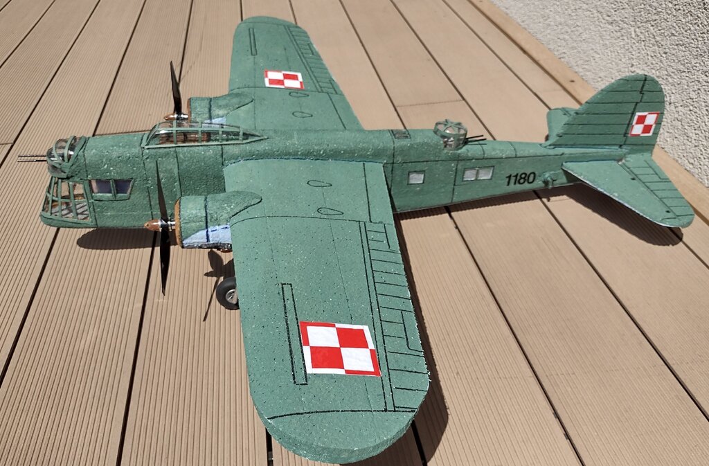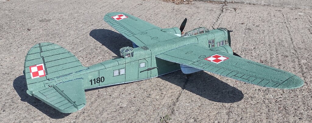 LWS-6 ŻUBR. Właściwie wszystko o nim powiedziano i napisano. Chyba każdy z nas chociaż raz widział zdjęcie tego samolotu. Wielu mówi o nim "BRZYDAL" , ale ja sądzę że nasz Żubr byłby daleko za podium, jeżeli chodzi o brzydotę . Przecież taki Amiot 143 , to istna podwieszona pod skrzydła salonka cała ze szkła. czy również francuski Bloch MB 200 lub Farman Czy amerykański Boeing B-9g , ale klasą dla siebie był ciężki bombowiec radziecki Tupolev TB-3 No właśnie, nasz Żubr to piękniś przy nich , a do tego przecież to nasz bombowiec. Fakt, równocześnie budowano niesamowicie nowoczesnego Łosia , a podobno z powodu ciągłych modernizacji / za wszelką cenę chciano, aby ten samolot latał w naszych barwach/ był to najdroższy samolot II Rzeczpospolitej, to jednak warto by taki samolot był również jako kombat /subiektywne/. Czy będzie z niego wymiatający kombat ? pewnie nie , ale można spróbować. Marek przysłał pianki i wszystko jasne , będzie ciężko, bo waga jest słuszna . ale nie ma się co dziwić , kadłub tego samolotu to monolit o długości 88cm. do tego bardzo szerokie skrzydła i stateczniki dodajmy jeszcze bardzo duże gondole silników / w oryginale często je wymieniano ciągle były za słabe/ no, ale taki był nasz Żubr. Koniecznie trzeba zmniejszyć wagę, trzeba powycinać co się da. Przód jest cały ze szkła trzeba wzmocnić podłogę , nakleilem tam na cyjanoakryl sklejkę i całość stała się pancerna. Wydłubałem trochę i powstał bardzo ażurowy przód. Niestety to górnopłat i dojście do elektroniki możliwe jest tylko od spodu. Z boku uniemożliwiają to gondole bardzo dużych silników . Odciąłem spód kadłuba, a przypominam w połowie jest on powycinany więc praktycznie tylko wzmocnienie boczne może nadać mu sztywność . Wkleiłem węgiel i rzeczywiście dało to oczekiwany rezultat. Tak wiec cała elektronika / regulatory i odbiornik będą zamocowane na ścianach/, a bateria na " suficie " kabiny. Umocowanie tak wysoko baterii prawie w osi skrzydeł może spowoduje polepszenie kręcenia beczek. Może? Niestety jestem skąpy i buduje z tego co mam w zapasach szufladowych i nie jest łatwo , bo cala elektronika też waży niesamowicie dużo. To już 530 gram!!!!!!!! a gdzie reszta ? popychacze, klej, farba serwo ogonowe itd........ Zobaczymy. m