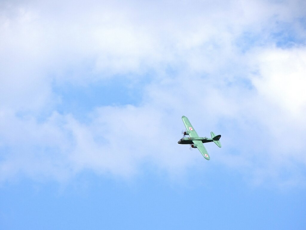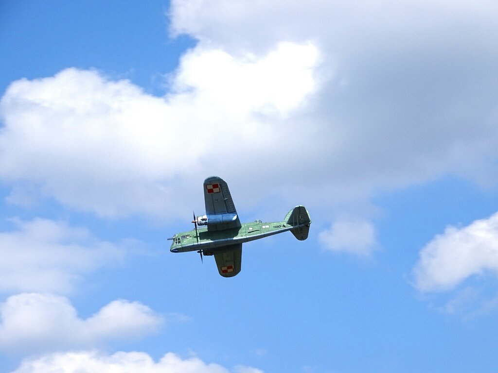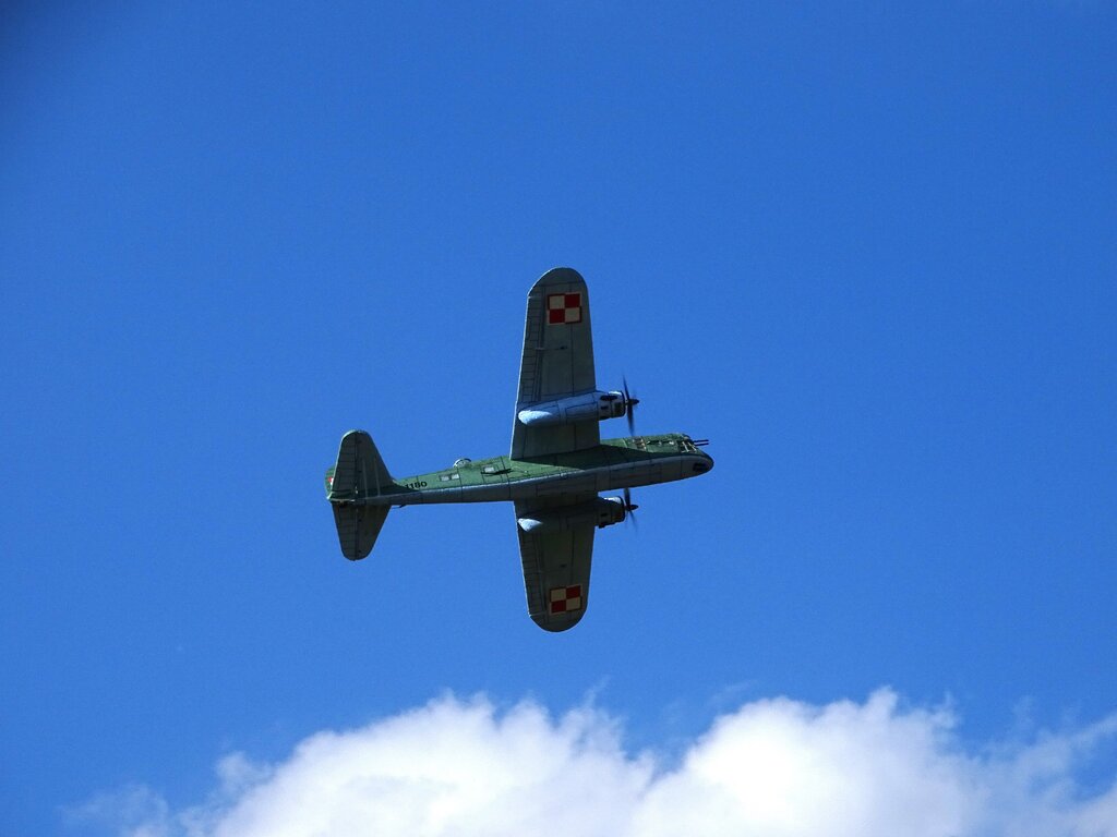 No cóż , niedopatrzenie, pośpiech i użyłem niesprawnego odbiornika, który powodował awarie lotek i steru wysokości. Bardzo widowiskowa katastrofa nie była tak straszna w skutkach. Oderwane dwa silniki , pęknięty ogon, oraz zbita boczna szyba kabiny nawigatora. Całość ocalała dzięki " pancernej podłodze" kabiny. Naprawa trwała dwie godziny i na drugi dzień na lotnisko. Uwagi po oblocie : zastosowane silniki emax-a 2822 o KV 1200 dla których optymalne są śmigła od 9- 10 x 5 nie koniecznie są dobrym rozwiązaniem. Nie mogłem znaleźć przelicznika na trójłopatowe , więc samolocik poleciał na 70x40 , czy to dobry zamiennik , nie wiem. Użyte śmigła wystają około 1 cm ponad spód ŻUBRA i trzeba bardzo uważać podczas lądowania. Oblot odbył się jak zwykle przy wietrze , a szerokie skrzydła i znaczny kadłub też stawiał opór. Jak lata ŻUBR zobaczycie sami. To piękny samolot, a Tomek / operator kamery/ spowalniając pierwsze i ostatnie fragmenty filmiku nadał ŻUBROWI NIESAMOWICIE MAJESTATYCZNY wygląd . W tym filmiku tego nie widać , ale ŻUBR robi bardzo obszerne pętle i wręcz nie chce robić beczek. Mimo to, to przepiękny samolot - tak napisał Grzechu RC- całkowicie się z nim zgadzam /nieskromnie/ , a że nie akrobata , przeca to bombowiec. Jest jedyny w swoim rodzaju polecam wszystkim. Pozdrawiam. Marek