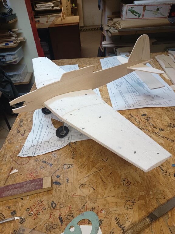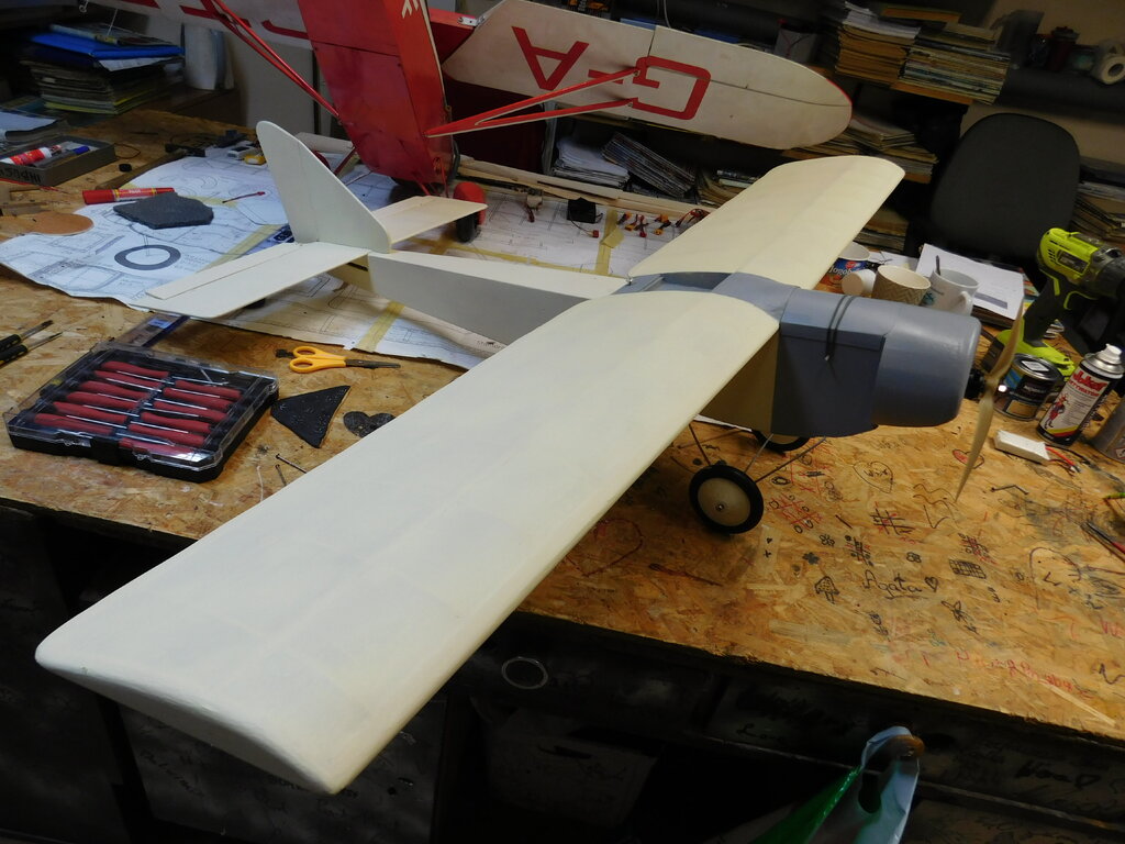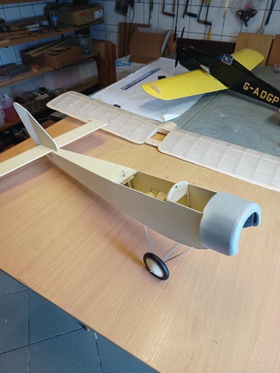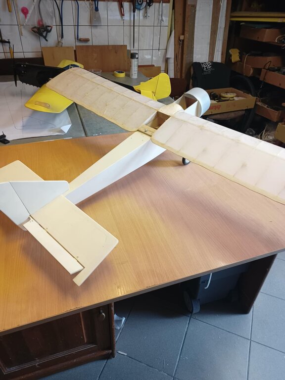 Budowy ciąg dalszy.... kadłub i usterzenia pomalowane na jasno żółto, dojdą jakieś oznaczenia...powoli ku końcowi wszystko dobija. -