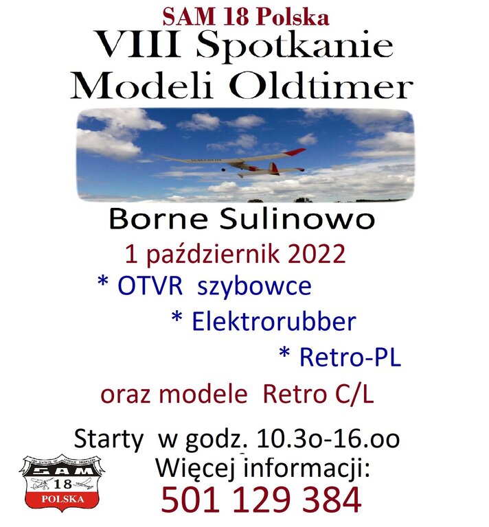 17. Zapraszamy 1 października do Bornego Sulinowa na już ósme spotkanie. Latamy w klasach: OTVR szybowce, Electrorubber, Retro-PL oraz modele na uwięzi Retro C/L Starty od 10.30