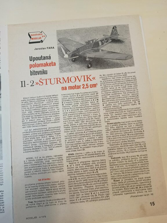 3. Na warsztat wleciał model Iła-2. Punktem wyjścia jest plan wykonawczy opracowany przez Jaroslava Farę, który został opublikowany w czeskim Modelare 4/1976 W stosunku do wersji oryginalnej planu, zostanie wprowadzone kilka zmian, a tą największą są skrzydła: konstrukcyjne zostają zamienione na ze styropianowym rdzeniem. Rozpiętość 1080 mm, długość 820 mm /bez kołpaka/ Silnik OS max 15LA 2,5 cm cdn.....