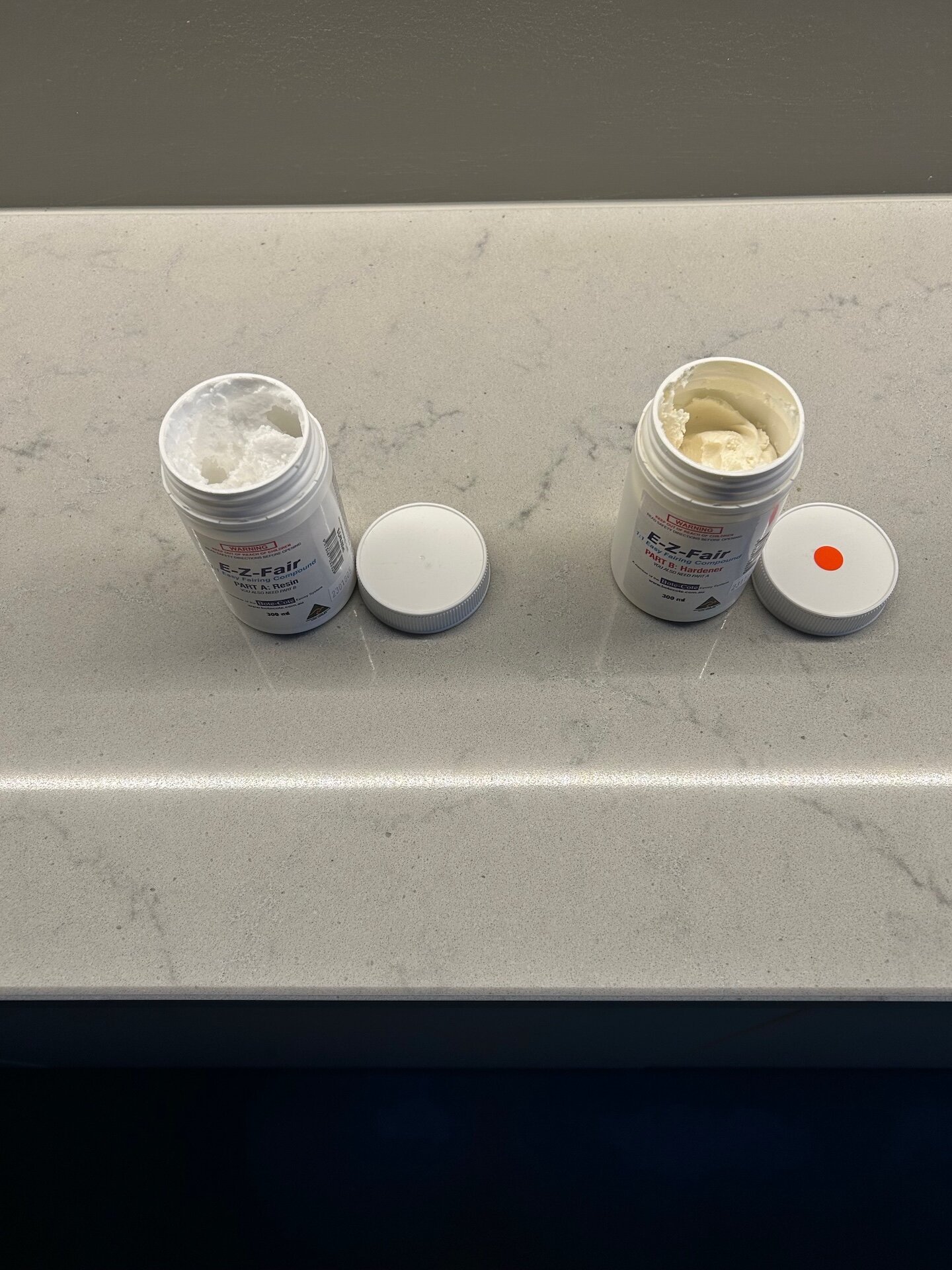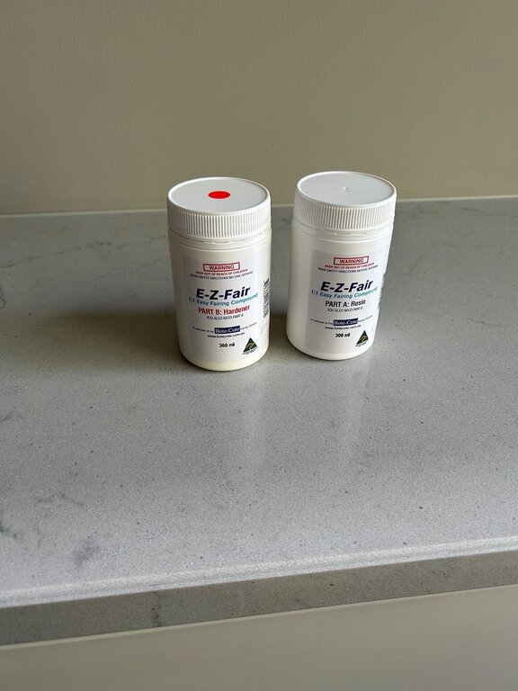 Witam, To jest taka pasta epoksydowa : E-Z-Fair is a lightweight two-part epoxy paste designed for filling and fairing imperfections above and below the waterline. Use it for filling scratches, dents, levelling or fairing uneven surfaces on fibreglass (polyester, vinylester or epoxy), wood or metal. non-critical, easy to use 1:1 ratio by volume - simply mix two equal scoops extended working time of 40 minutes full cure within 24 hours at temperatures of above 15 deg C non-sagging thixotropic paste formulation easily fills large gaps bonds strongly to most substrates totally waterproof, use above and below the waterline ideal for repairing cut out osmotic blisters The 3.6L kit has a 1.8L container of resin and a 1.8L container of hardener. E-Z-Fair will adhere to most things provided proper surface preparation has been done. Some plastics and some metals require special surface preparation.