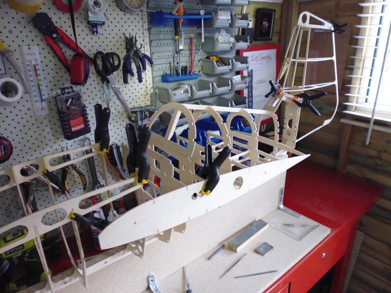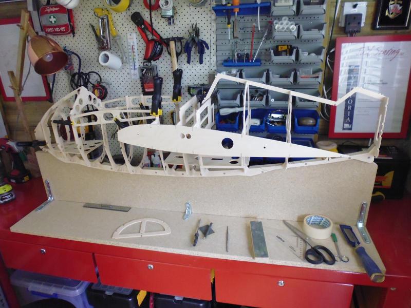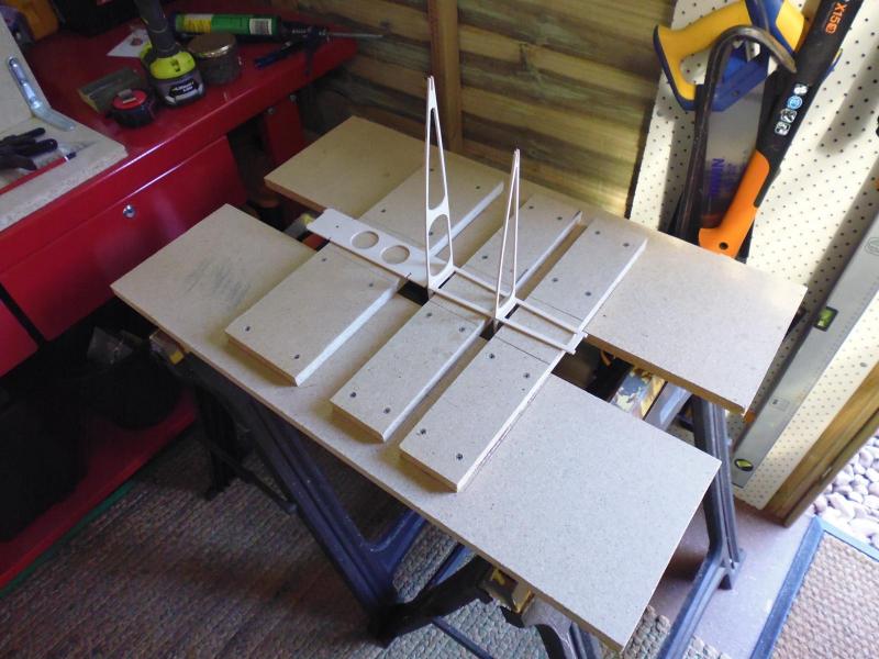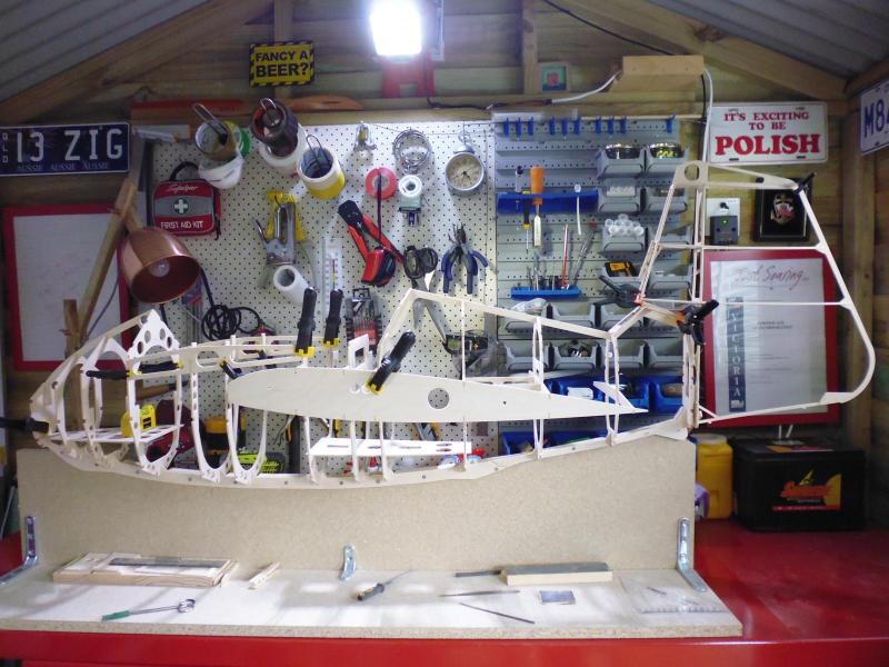 Dzisiaj zrobilem " jig" do budowy steru kierunku.Zachowa to prawidlowe katy i plaszczyzny do sklejania. Moge to uzyc z dwoch stron. Niestety sasiedzi organizuja drinka po poludniu - taki zwyczaj tu jest - zaproszenie dla kazdego domu na naszej ulicy. Koncepcja dobra ale psuje mi rytm pracy.Ale chyba lepiej nie narzekac. Ziggy
