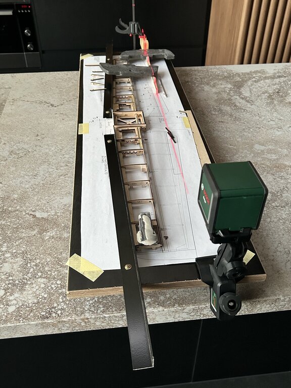 Witam, Kadłub zostawiam tak jak jest na desce montażowej.Musze zbudować skrzydła aby wszystkie katy były prawidłowe i wtedy kadłub będzie skończony. Sosnowe listewki były 15X5 i musiałem je pociąć na 12X5.Ten mały Proxxon jest naprawdę wspaniały. Zrobiłem taki szablon do cięcia kata listewek - musiałem zrobić polaczenia do długości 2.25m. Teraz skladam skrzydło na sucho aby zobaczyć czy wszystko pasuje. Następne dwa dni nie są dobre mamy wysoka temperaturę aż do 40 deg.