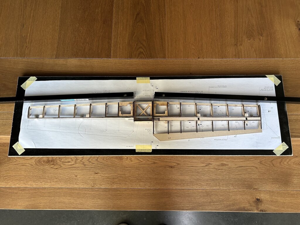 Witam, W końcu dotarły do mnie wszystkie listewki w metrycznych wymiarach wysłane z Polski.i Tu w Australii jest to trochę skomplikowane bo większość listewek jest w rozmiarze 'Imperial " wiec trzeba dużo czasu aby to wszystko powycinać. Teraz musze je posklejać ponieważ musze mieć prawie 2 m długości. Sprawdziłem wszystkie części statecznika poziomego i zacznę budowę za pare dni.