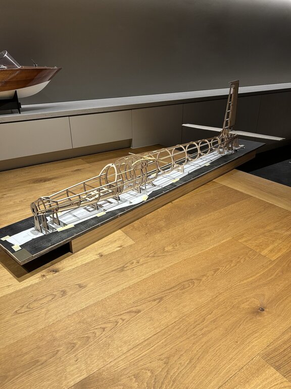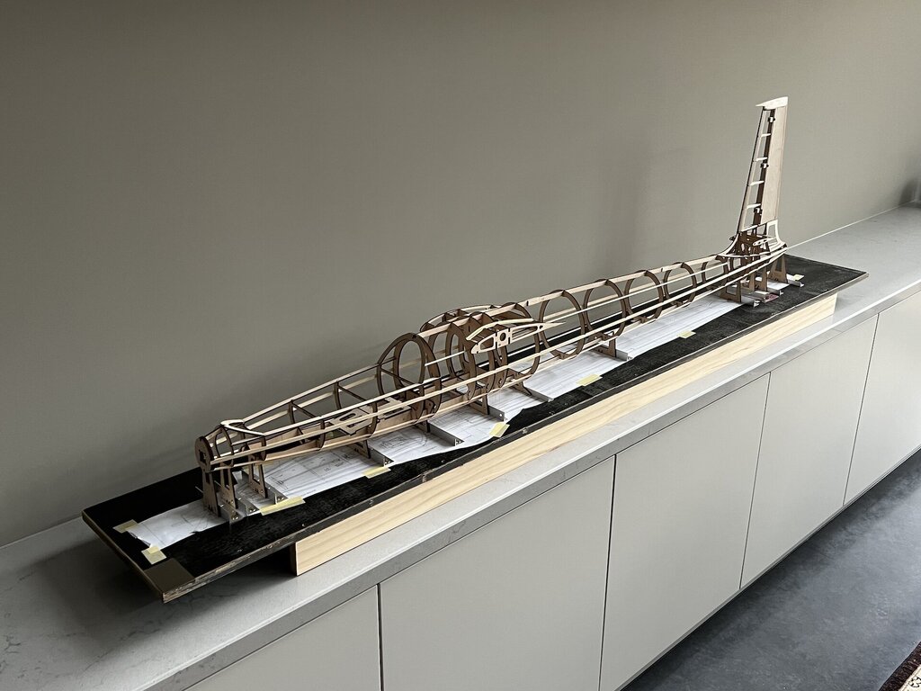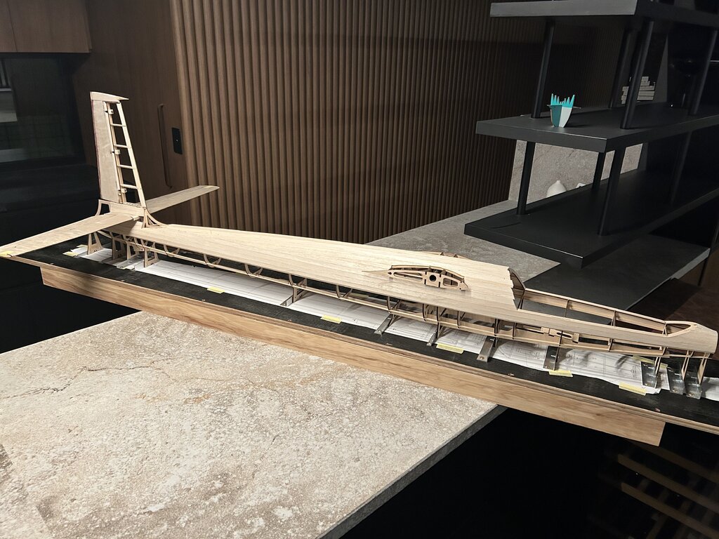 Witam, Dzisiaj skończyłem klejenie kadłuba.Wszystkie listewki na miejscu. Musze powiedzieć ze kształt Zefira 4 był na te czasy był bardzo extrawagandzki. Teraz kleje statecznik poziomy - zdjęcia w następnym poście.