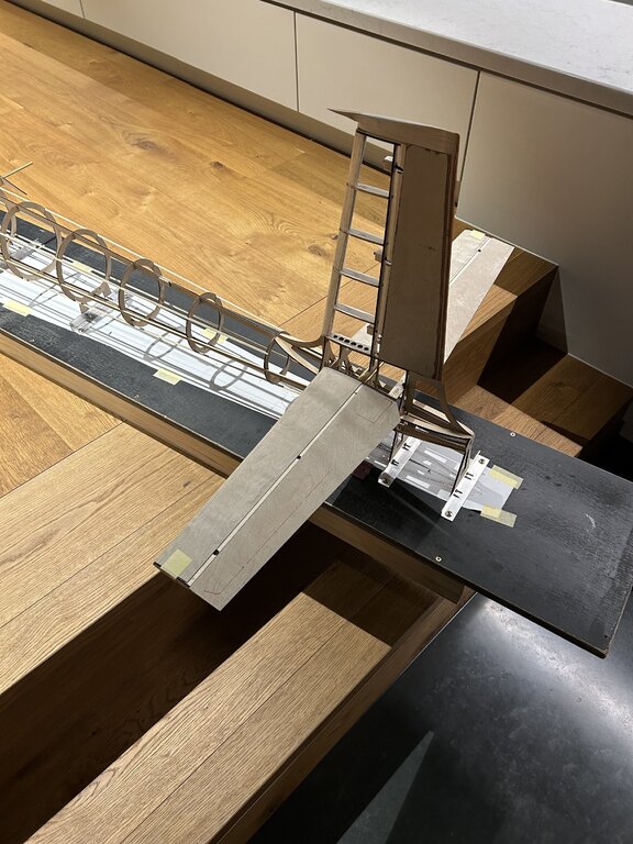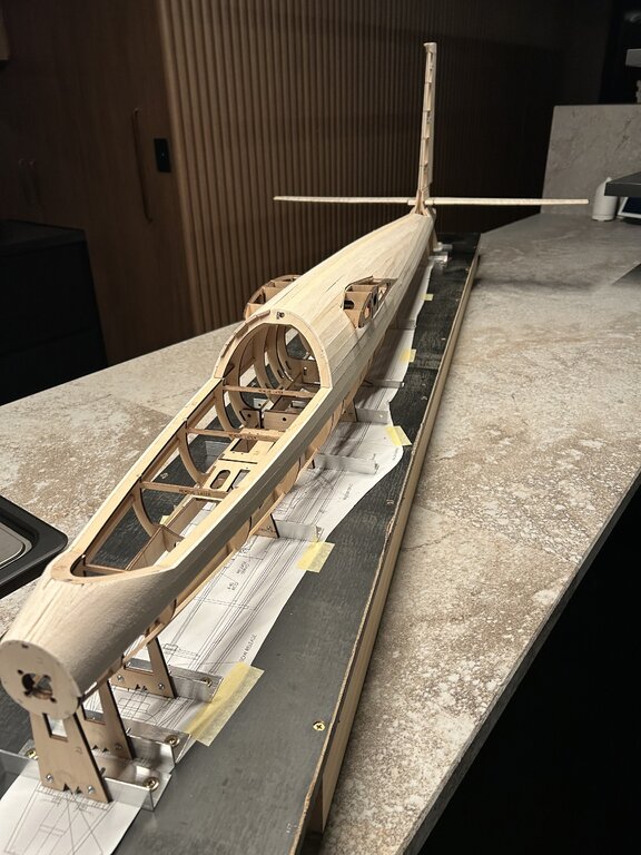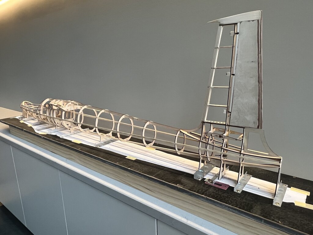 With, Troche do przodu. Prawie polowa kadłuba pokryta balsa 3 mm. Trochę jest zabawy w części tylnej kadłuba. Tak to prawda ustrzenie było płytowe ale jest to bardziej skomplikowane w modelu tej wielkości i ta zmiana jest bardziej stabilna. Rozmiawialem z projektantem modelu i będzie on dostępny z UK. Podam kontakt w następnym poście