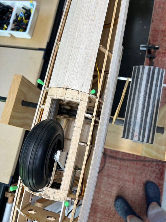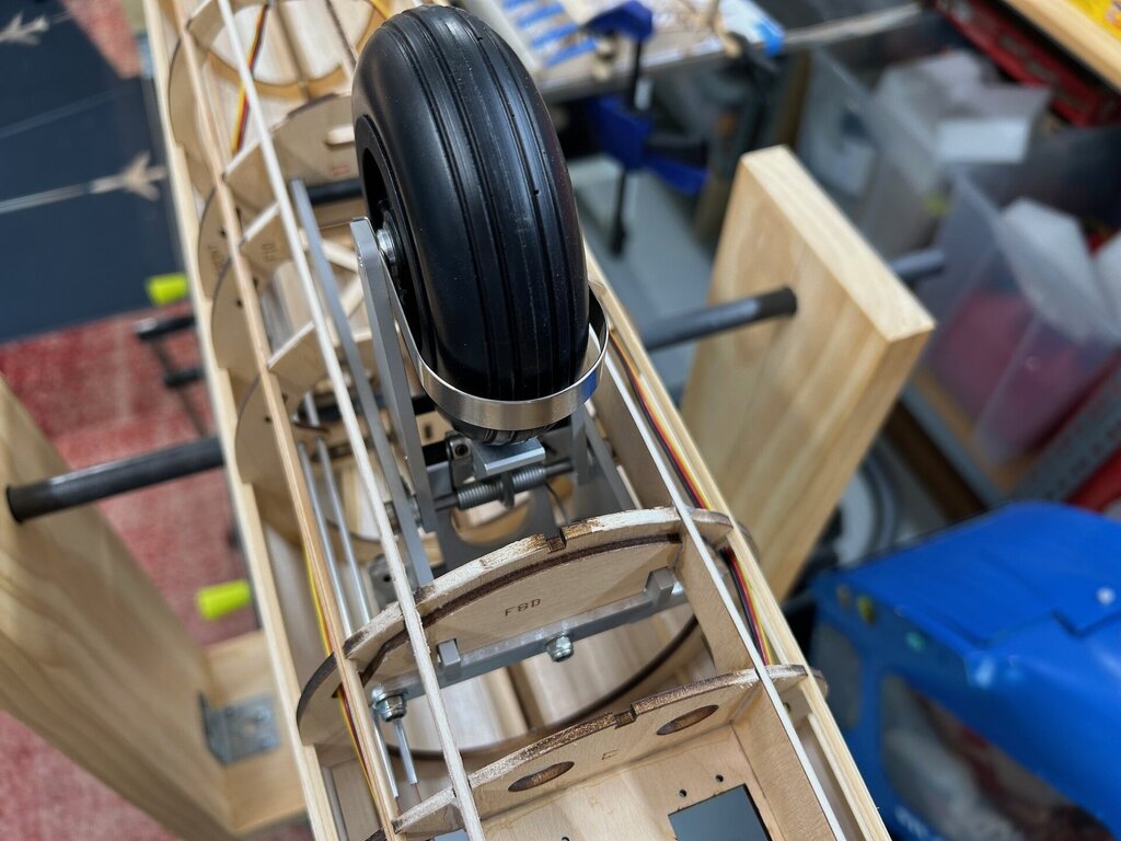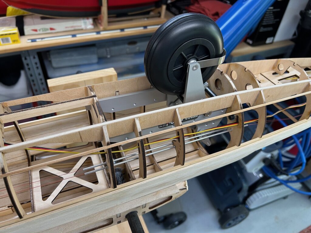 Witam, Dzisiaj zamontowałem podwozie FEMA.Weszlo bez problemów.Musze powiedzieć ze te plany są bardzo dokładne, bez niespodzianek. Linki do steru kierunku zamontowane i także przewody do serw steru wysokości. Kadłub gotowy to pokrycia i zamknięcia.
