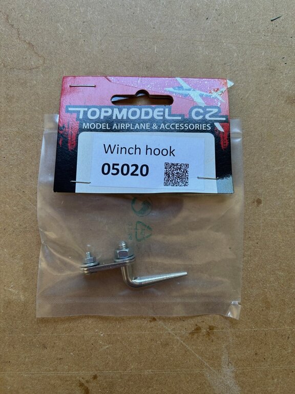 Witam, Dzisiaj dostałem hak od Topmodel. Nie bede montował zaczepu go holowania. Start za pomocą bungee ( gumowa lina ) jest bezpieczna, uzywałem to do startu Pirata. Teraz musze zalaminowac 3 warstwy sklejki 1mm do wzmocnienia miejsca intstalacji haka. Wtedy mogę dokończyć pokrywanie kadłuba. Dzisiaj to trochę ciężko z używaniem kleju, temperatura doszła do 40 deg i na klejenie mam tylko pare minut.
