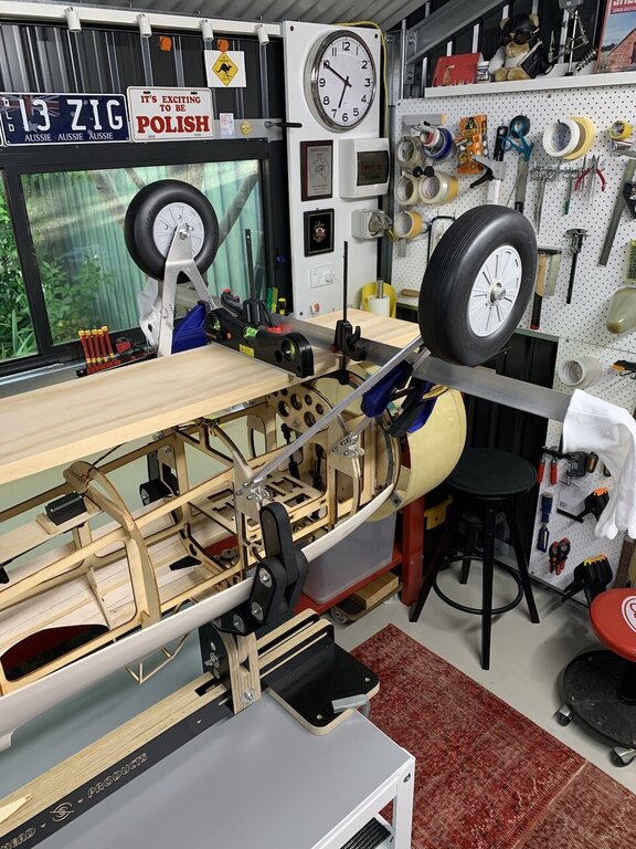 Witam Mialem dużą przerwę. Postal nowa modelarnia. Dwie stare budy usunięte i postawiłem nowa 3 x 5 m. to taka typowa konstrukcja w Australii.Typowa konstrukcja z blachy falistej.Mam doprowadzony prąd.Betonowa podloga musiała się suszyć się 8 tygodni do czasu malowania.Jeszcze tylko muszę termicznie uszczelnić dach ponieważ szybko się nagrzewa. Teraz rozpoczynam budowę 11stki. Rozwiazanie podwozia to tak jak u pana Henryka. Zrobiłem tulejki z aluminium z rowkiem. Podwozie wycięte z blachy aluminium 3.2 mm (aviation grade) Ustawiłem to i sprawdziłem katy - wszystko gra. W poniedziałek będę to miał pospawane IMG_0485.MOV -