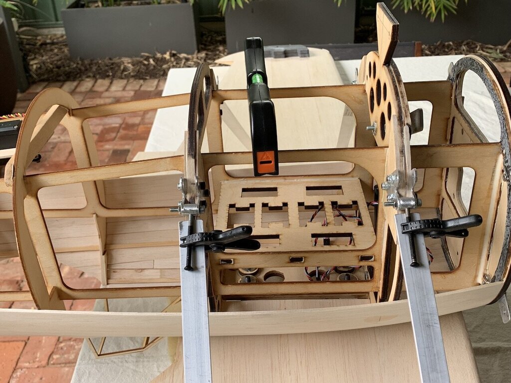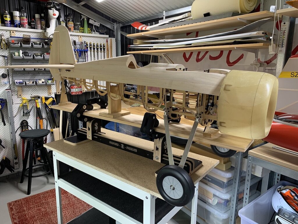 Witam, Lewe podwozie skończone i oprofilowane. Teraz sklejam prawa stronę W międzyczasie zrobiłem podłogę kabiny z fotelem pilota.Musze skończyć wszystkie części kabiny zanim pokryje kadłub. Ziggy -