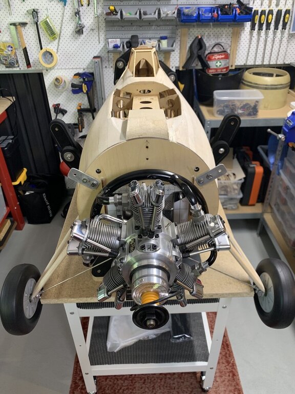Wilga oblatana. Saito 90 cc ma duzo mocy. Swobodnie może być użyty do modelu do 18 kg. Latam tylko na 60%.Czekam teraz na śmigło Biela 25x8 -makieta Wilgi. Jadę dalej z pokryciem kadłuba 11-stki. Do napędu steru kierunku będą użyte druty, trochę było zabawy z otworami na wyjściu Kadlub nabiera kształtu. Ziggy -