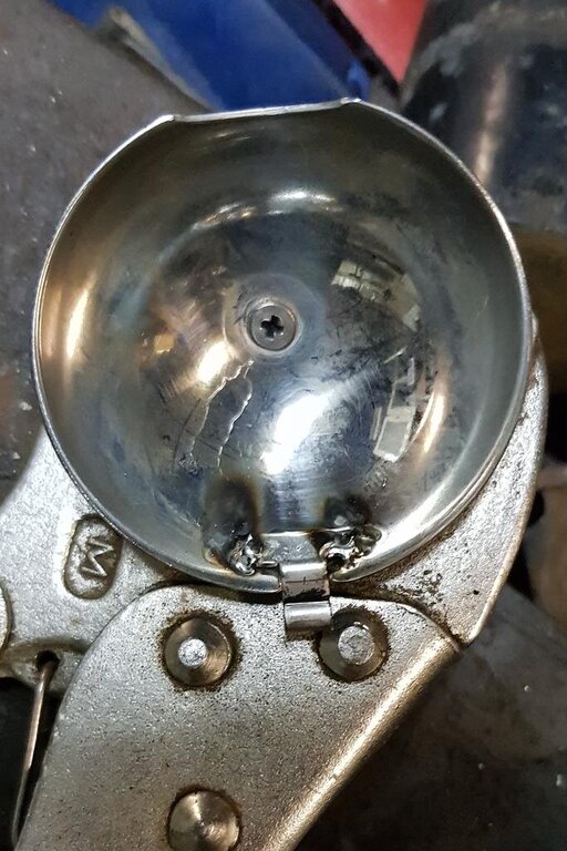 Pierwszy strzał nadtapiał blaszkę zawiasu a drugi, w to samo miejsce, stapiał z pokrywką. Skoro dwa zgrzewy punktowe wytrzymały ponad 30 lat to teraz te spawy przeżyją tą kawiarkę.