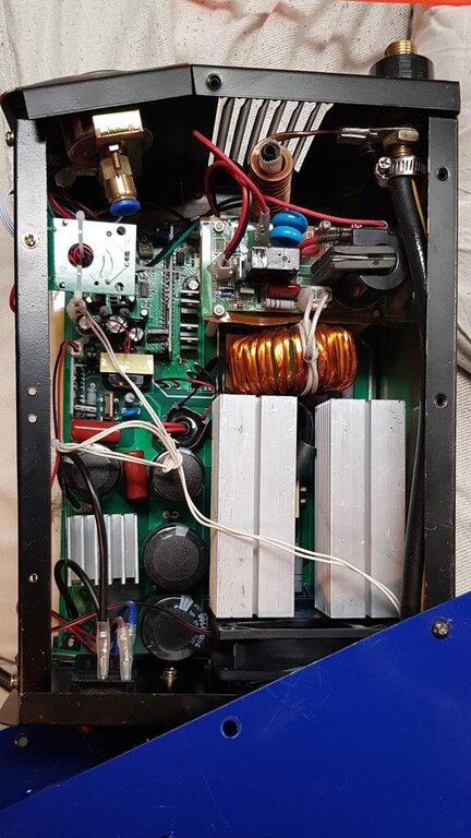 Przystawka przyszła Przyszedł TIG i Plazma Zabrałem się za testowanie i kiszka. Okazało się, że reduktor do gazu, jaki miałem do Stamosa, nie pasuje do mojej nowej butelki z argonem. Pasuje do do małych a teraz mam 40l. Trzeba kupić nowy. Przez ponad rok tego nie sprawdziłem. Testy najprędzej po świętach. Za to sama spawarka w trybie MMA działa super. Bardzo fajnie inicjuje łuk, elektroda się nie klei. Muszę też wbudować do TIGa zasilacz 5V dla tej przystawki. Bo fabrycznie trzeba go do drugiego gniazdka podpinać. Przy okazji. Przecinarka plazmowa to coś genialnego! Tnie grubą stal jak nożem masło. I no niemal bezgłośnie w stosunku do diaksa. W środku wygląda całkiem solidnie. Może mieć te deklarowane 60A.