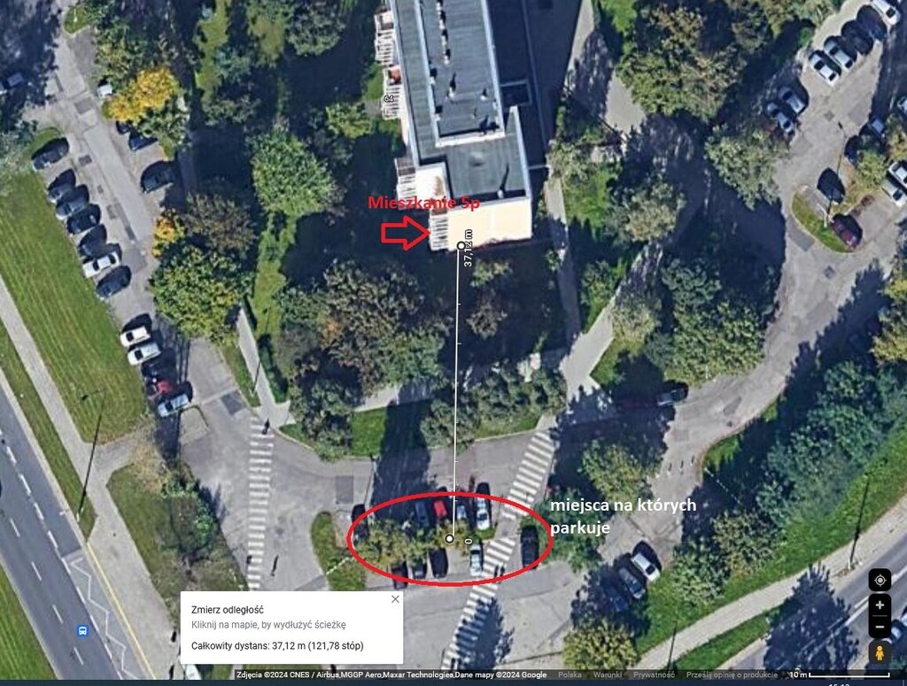 Podepnę się pod wątek. Znajomy rzucił mi temat: potrzebna kamera żeby uchwycić cwela który niszczy mu samochód. A to wycieraczki urwane, a to porysowany lakier, a to naplute na szybę. Gdzie by nie zaparkował to coś się dzieje. Sytuacja wygląda następująco: Mieszkanie ma na 5 pietrze a parkuje gdzie zaznaczone. Drzewa ponoć nie przeszkadzają. Kamera zewnętrzna najlepiej obrotowa, z wewnętrznym nagrywaniem na kartę, dostępem z sieci. Jakość obrazu im większa tym lepiej. Zastanawiamy się jeszcze nad kamerą którą można by umieścić wewnątrz samochodu. Nie bawiłem się nigdy z rejestratorami z trybem parkingowym.