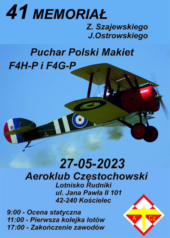 6. Aeroklub Częstochowski Puchar Polski F4H-P i F4G-P https://aeroklub-czestochowa.org.pl/41-memorial-zdzislawa-szajewskiego-i-jerzego-ostrowskiego-puchar-modeli-makiet-latajacych-2023/