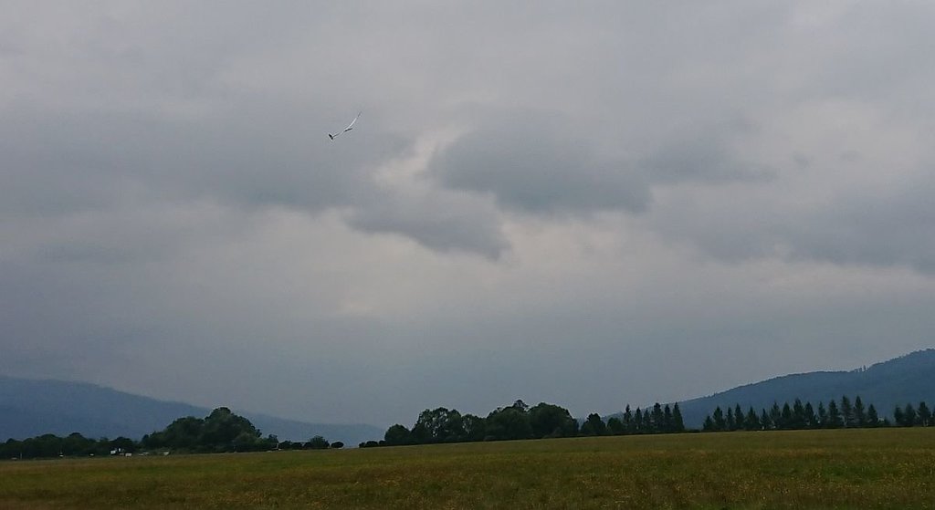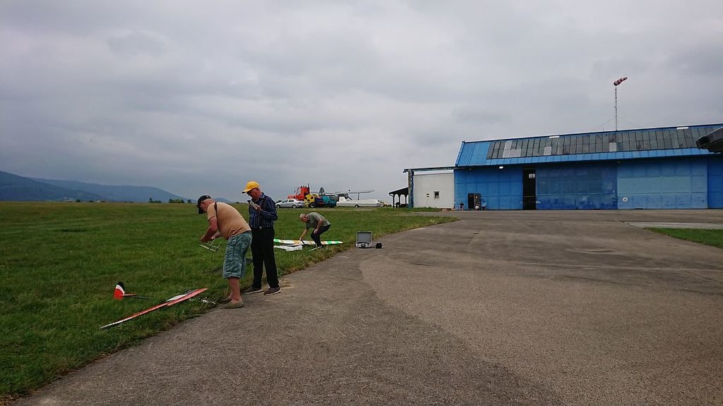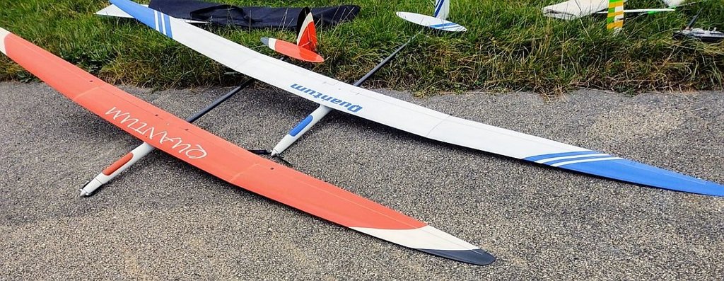 8. Cześć Patryk. Po krótkich, poniedziałkowych lotach ( mini relacja na filmiku), mam "banana" od ucha do ucha Pierwszy lot z ręki - model w linii prostej pokonał prawie całe lotnisko z moją delikatną pomocą SW . Wiatr 1-1,5m/s Jest genialnie - pomyślałem . Start na silniku i w górę... Lata jak po sznurku. Całe latanie na filmiku jest bez miksu klapy/SW. Model świetnie wchodzi w krążenie. Mam miks lotek ze SK - przy 25 stopniach lotki, mam 25 stopni SK. Przy większej prędkości można naprawdę ciasno krążyć. Większym modelem - Shadow - nie odważyłbym się na takie manewry nad ziemią. Quantumem o dziwo nie czułem takich "oporów" - a jestem cienki w te klocki i cały czas się uczę. Ogólnie cała zabawa dopiero się zaczyna. Pogoda do jutra wymusiła przymusowy hangar, więc dokończyłem pełną konfigurację Snapflapa. We wtorek spotkałem się z Krzyśkiem - producentem modelu - gościnnie z modelarzami na płycie lotniska Aeroklubu Bielsko Bialskiego. Niestety pogoda nas nie rozpieszczała - na zdjęciu rękaw wiatrowskazu był pełny... Udało się wykonać dwa loty. Niestety bez przygotowania, doważenia modelu i przetrymowania, nie ma o czym pisać. Była to walka z wiatrakami (czytaj z drążkami).
