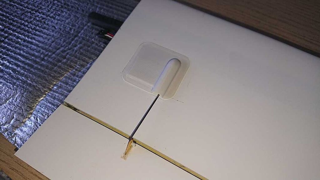 13. Cześć Wszystkim. Powoli montaż wyposażenia dobiega końca I kilka wyjaśnień dla zainteresowanych, którzy pisali na priv. Odnośnie montażu serw w kadłubie - z racji że jest to wersja z "wieżyczką", chcąc zastosować sztywne węglowe popychacze, zamontowałem serwa do "góry nogami". Pozwoliło to na poprowadzenie cięgna idealnie w linii prostej od serwa do steru. Szczegóły na zdjęciach. Montaż jest banalnie prosty, dla ułatwienia montażu z serwem, snapy są kulowe. W dolnej części kadłuba w osi kulki snapa, jest mały otwór fi 4, przez który można docisnąć i "zatrzasnąć" końcówkę snapa na dźwigni serwa. Dzięki takiemu rozwiązaniu, mam dużo miejsca nad i obok serw na zastosowanie ewentualnego dodatkowego balastu. Docelowo aby zacząć zakres wywarzania modelu od 60-65mm, regulator i pakiet 3S 1,3Ah musi "wylądować" jak najbliżej wręgi silnika. Teraz tylko poklikać na aparaturze i pierwsze loty...