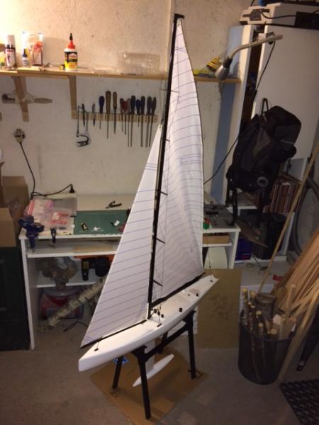 Cześć, Łódka gotowa do wodowania i testów. Zamiast windy proponowanej przez producenta zostało zastosowane ramię jak w RG - system prostszy, tańszy i mniej zawodny. Niestety jest to okupione mniejszym wychyleniem żagli w kursach pełnych. Wszystko wyjdzie na wodzie, a jak się nie sprawdzi zawsze można wstawić windę . Zrezygnowałem na razie z delikatnych detali na pokładzie, które zostaną wklejone przed pierwszym oficjalnym startem. Pozdrawiam, Łukasz -