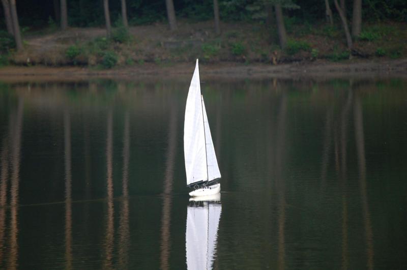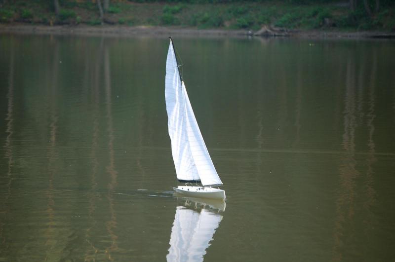Cześć, Łódka po szybkim remoncie, została dzisiaj opływana. Po przedłużeniu płetwy balastowej i zmianie balastu, zachowuje się dużo lepiej. Sklejone łączenie pokładu z burtą jest szczelne czyli wszystko O.K Pozdrawiam, Łukasz -