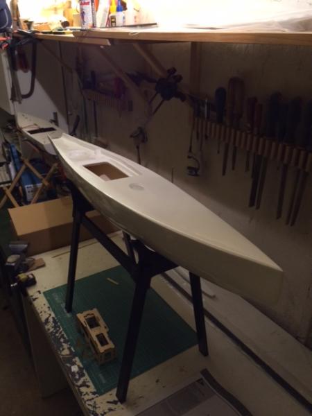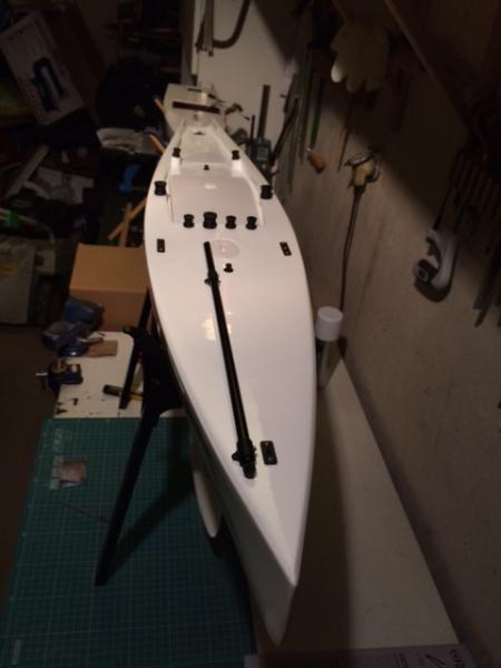 Cześć, Wreszcie udało się zrobić coś przy łódce. Sklejkowa konstrukcja pod serwa została sklejona CA i pomalowana kaponem. Przykręciłem też, kil, ster oraz większość z osprzętu na pokładzie - pod elementy pokładu musiałem wywiercić otwory w laminacie. Ponadto został poskładany i skręcony maszt. Jutro ciąg dalszy prac. Pozdrawiam, Łukasz -