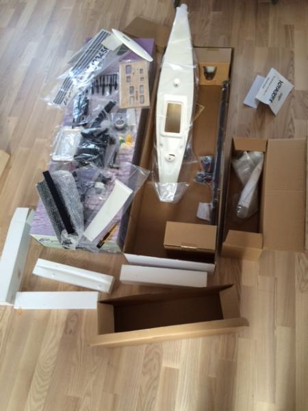 Cześć, Rozpoczynam, budowę jachtu z zestawu firmy Thunder Tiger. Celem jest opływanie w klasie NSS-A. Budowa docelowej łódki pod zawody ruszy zimą i potrwa pewnie 2-3 lata, a przez ten czas warto czymś pływać i zdobywać doświadczenie - stąd decyzja o kupnie zestawu. Dane techniczne to: długość: 1000 mm. szerokość: 195 mm. wysokość żagla: 1306 mm. powierzchnia żagli: 39,9 dm2 wysokość całkowita: 1580 mm. waga: 3500 g Łódkę obsługiwać będą dwa serwa T.PRO SERWO MG 995 DIGITAL sprawdzone już w RG 65. Na razie muszę przyznać, że jak na łódkę z wyprzedaży zestaw jest bardzo fajnie wykonany (najbardziej cieszy mnie laminatowy kadłub), wszystko dokładnie popakowane i nie trąci na odległość "chińszczyzną" - reszta wyjdzie w czasie budowy i pierwszych godzin na wodzie. Pozdrawiam, Łukasz -