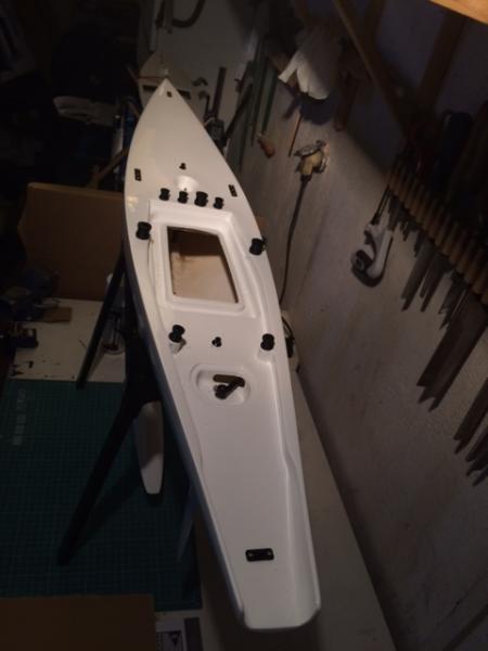 Cześć, Ciąg dalszy prac. Przykręciłem klapę dostępu do wnętrza łodzi oraz w 90% skończyłem grota (brakuje tylko sztag, achtersztag i listew w żaglu), ale założę je przy pierwszym mocowaniu masztu by dobrać optymalną długość. Mocowanie serw otrzymało kolejną warstwę kaponu Pozdrawiam, Łukasz -