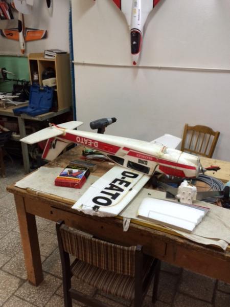 Cześć, Pisze ku przestrodze tych co wylądują samodzielnie dwa razy i przy trzecim starcie (a czwartym lub piątym w życiu), poczują się pewniej i rozluźnią . Przed dzisiejszym dniem polatałem miesiąc na symulatorze i raz na lotnisku gdzie modelem lądował mi doświadczony kolega. Pierwsze lądowanie w życiu, dzięki refleksowi kolegów modelarzy robiących unik, model po małym kapotażu bez strat wylądował w trawie. Drugie samodzielne lądowanie ( z radami doświadczonego modelarza) poprawne, ale w strefie nieskoszonej - kapotaż i wyrwane podwozie. Szybki remont na lotnisku przez kolegę z CA i trzeci lot. Zlekceważenie sprawy i tuż po "nerwowym" starcie, przy pierwszym nawrocie odrobina paniki, chwilowe zaćmienie i model ląduje wśród młodych drzew i krzaków. Skończyło się wyrwanym podwoziem i złamanym skrzydłem:(. Na zdjęciu mój Mentor oczekujący w modelarni na "remont" Pozdrawiam, Łukasz