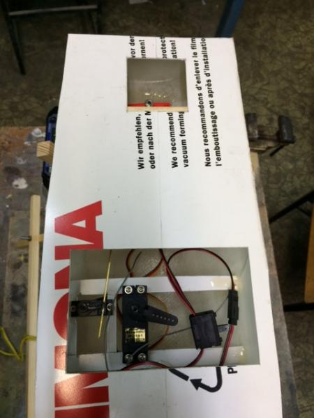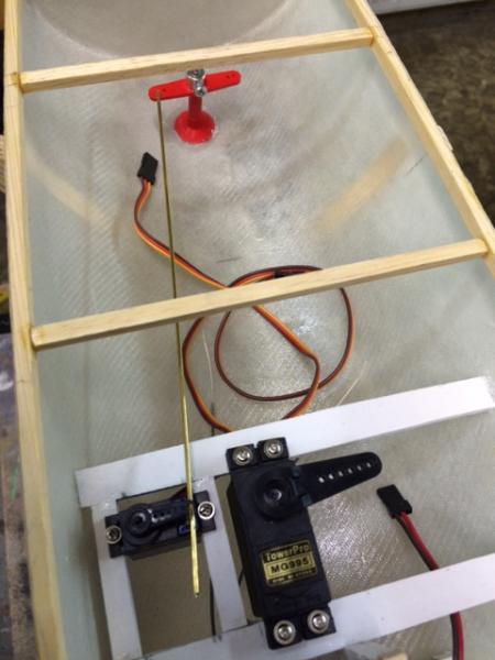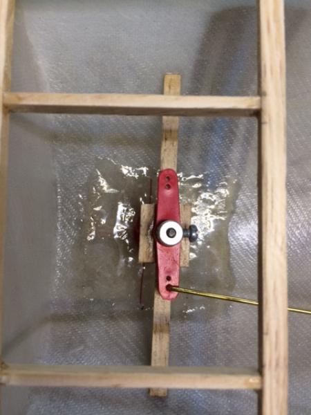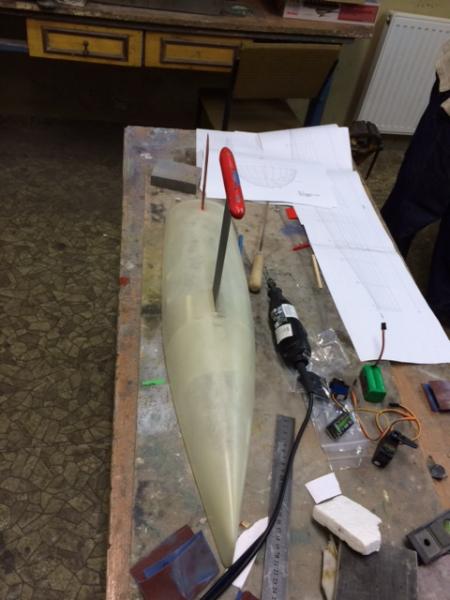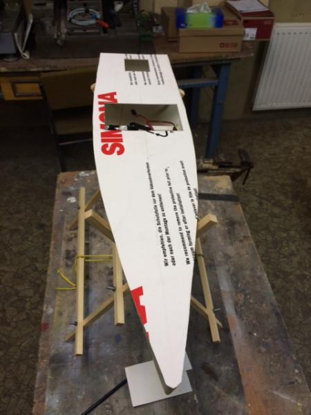 Cześć. Lecimy dalej, by zrównać się z czasem rzeczywistym:). Tym razem powstała podstawka pod model. Połączone zostało serwo ze sterem, a następnie wzmocniono żywicą i tkaniną szklaną kluczowe miejsca w modelu. Pozdrawiam, Łukasz -