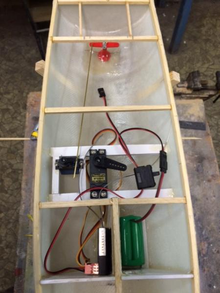 Cześć, Kolejny czwartek w modelarni i znów trochę do przodu. Wkleiłem poprzeczną listewkę stabilizującą ster. Główne serwo otrzymało ramię i zostały podklejone paskami PCV od spodu otwory w pokładzie, tak by klapy je zamykające miały oparcie. Na koniec został wklejony pokład. Za tydzień szlifowanie i może szpachlowanie:) Pozdrawiam, Łukasz -