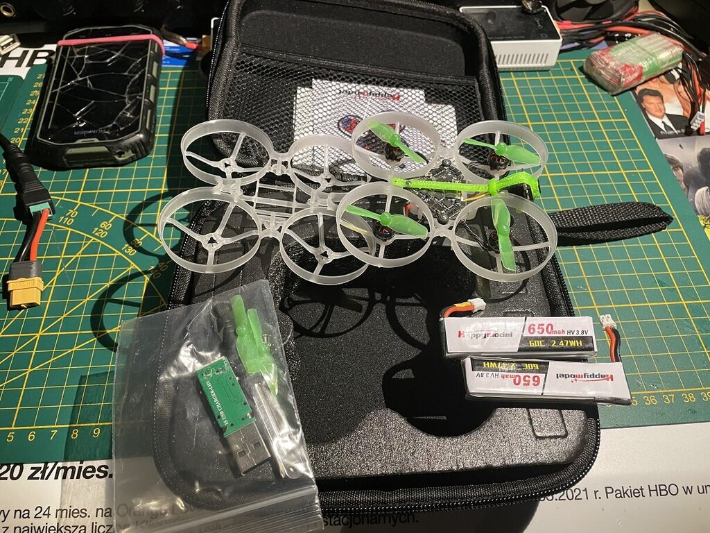 Witam Lato ma się ku końcowi a latać trzeba, pomyślałem o powrocie do jakiegoś mikrusa na lipo 1S którym można będzie polatać w domu ale także na zewnątrz. Jako że lubię gdy dron lata długo to wybór był tylko jeden Moblite7. W dronie zastosowano płytkę all in one która obejmuje 1 - kontroler lotu, 2 - ESC, 3 - odbiornik, 4 - VTX, jedynie kamera jest osobno . Zminimalizowano tym samym wagę do minimum 19,5 g i maksymalnie wydłużono czas lotu. Moblite7 jest ciutkę większy (75mm) od klasycznych woop-ów (65mm - występuje wersja Moblite6 właśnie w tym rozmiarze) a konstrukcja z przesuniętą kamerą na sam przód daje niesamowity nisko profilowy wygląd. Ewidentnie widać inspirację dronem jaki zaprezentował Mr Shutterbug. Oto dron: W zestawie: - Dron - bateria 650 mah - 2 szt. - dodatkowa rama - ładowarka USB - komplet śmigieł (4 szt.) - śrubokręt - narzędzie do ściągania śmigieł - instrukcja - zapasowe śrubki - naklejki - 2 szt. Całość do spakowania w zamykany pokrowiec. Pierwsze loty były dość dziwne bo dron borykał się z strasznym "yaw washout" dopiero zmiana ustawień obrotów silników z prop out na prop in przyniosła doskonałe rezultaty. Poniżej filmik z pierwszych lotów na zewnątrz, takiego cruising--owego stylu latania jaki lubię.